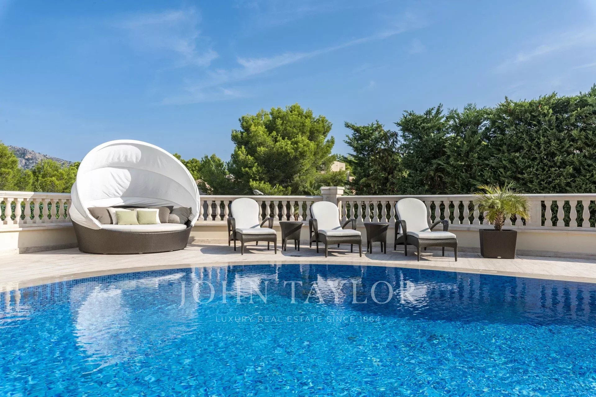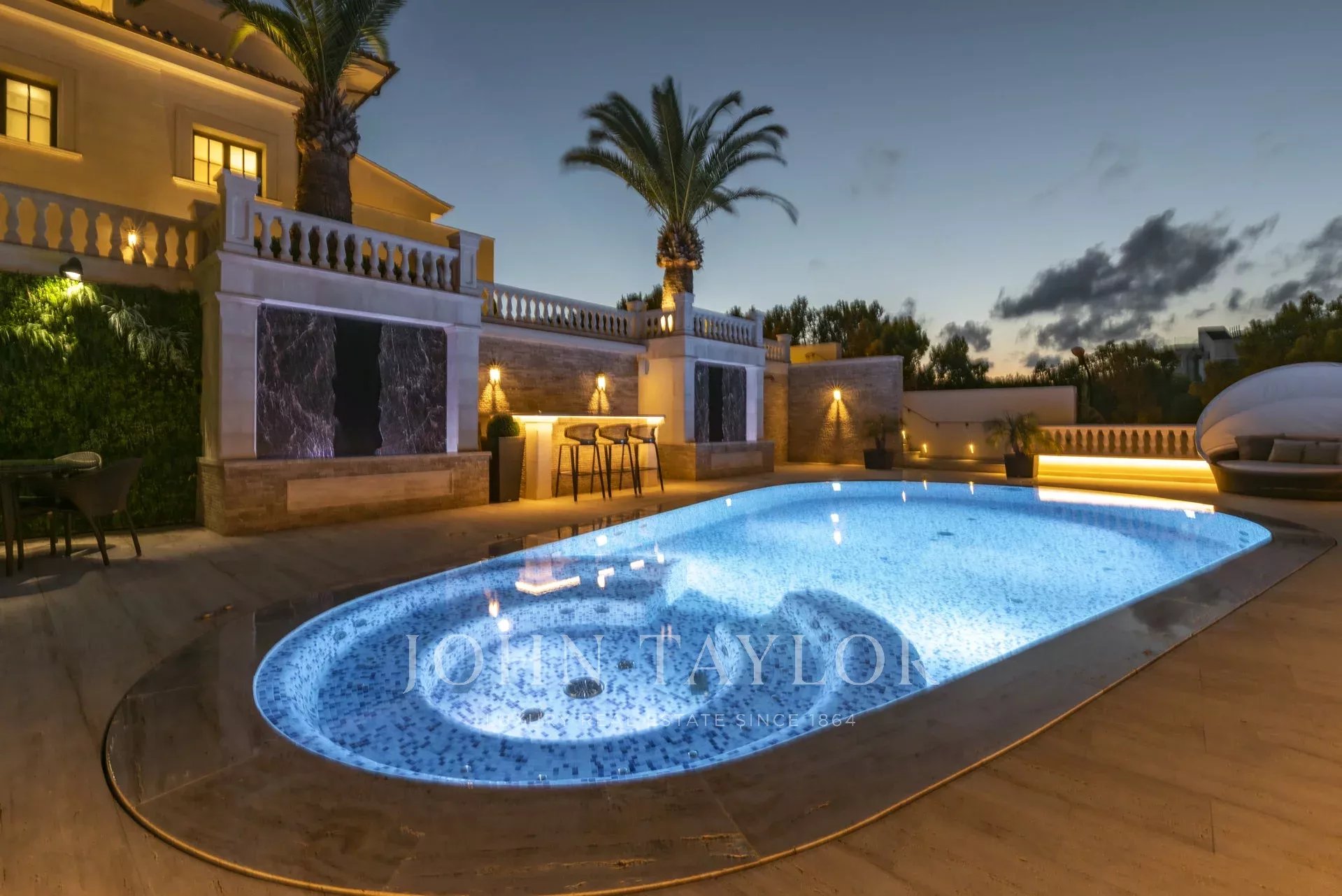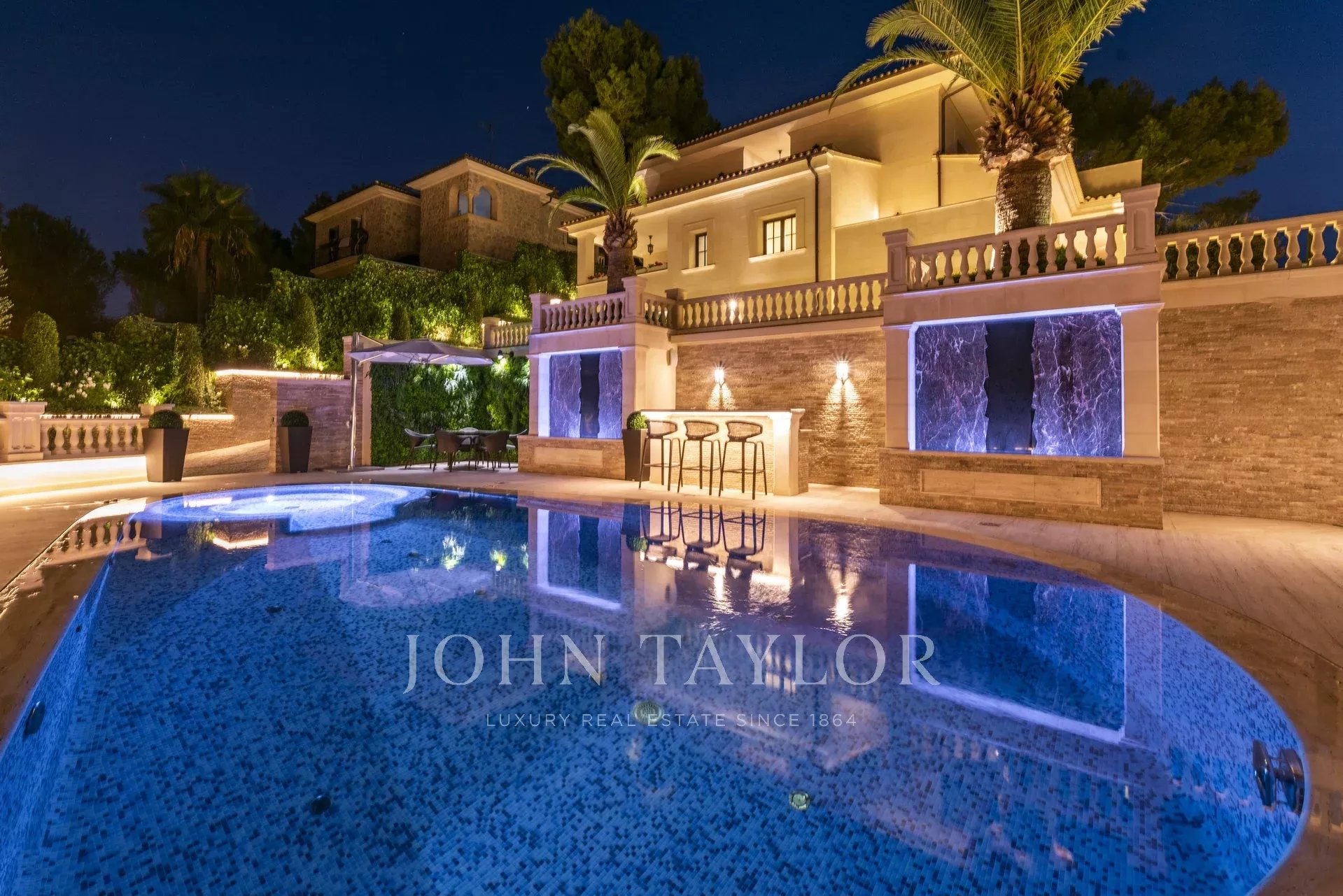 Na druhé straně je třeba vyzdvihnout zahradu a bazén s barem, vodopády, vířivkou, vyhřívaným bazénem, který umožňuje využití i v listopadu a březnu, adaptivní krajinné osvětlení, které dodává domu zvláštní elegantní a slavnostní vzhled. Dům je vybaven nejmodernějšími technologiemi, pokročilý systém domácí automatizace umožňuje ovládat podlahové vytápění, klimatizaci, hudbu a osvětlení z tabletu nebo Ipadů v každé místnosti a na terase, systém čištění vody osmózou čistí a dezinfikuje veškerou vodu v domě, bazén je vybaven elektrolýzou a systémem čištění vody ultrafialovým světlem, pokročilý bezpečnostní systém vám také umožní relaxovat a užívat si dovolenou na Mallorce bez obav.