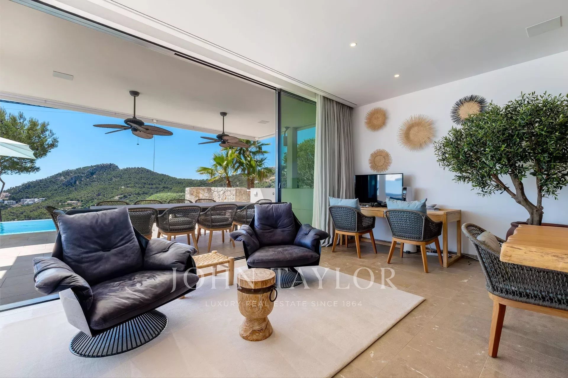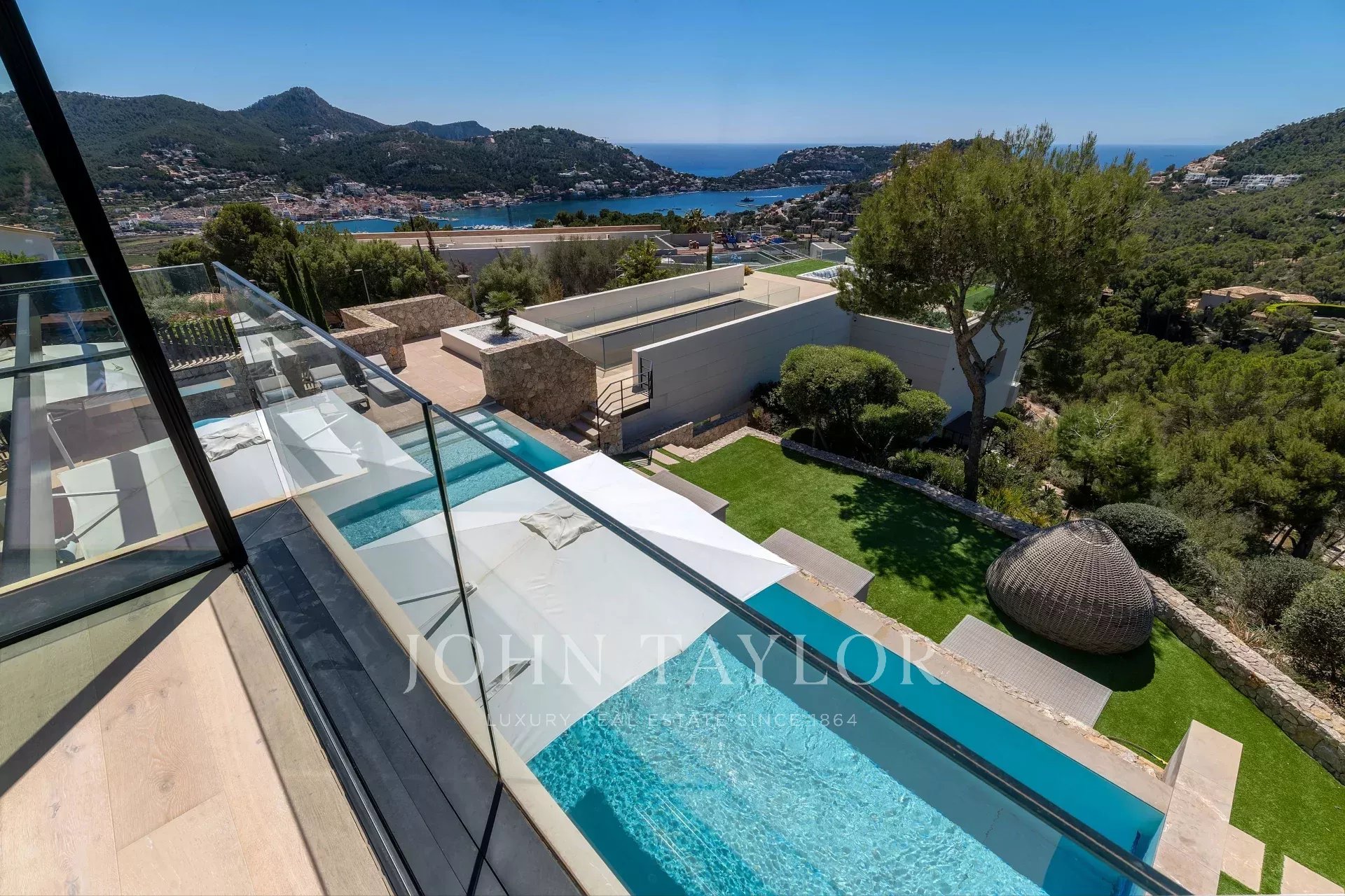 Tato exkluzivní nemovitost na jihozápadně orientovaném svažitém pozemku o rozloze 2471 m2 se nachází v prestižní oblasti Puerto de Andratx na jihozápadě Mallorky. Tato výjimečná vila nabízí životní styl plný luxusu a soukromí s bezkonkurenčním výhledem na vyhledávanou vesnici Puerto de Andratx i na jachtařský klub, hory a otevřené moře.