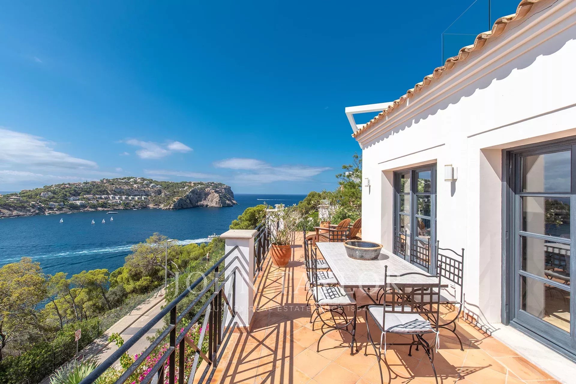 Objevte tuto výjimečnou rezidenci v první linii exkluzivní čtvrti Puerto de Andratx, kde se úchvatný výhled na záliv stává dokonalým prostředím pro pohodlný a sofistikovaný život. Tato nemovitost se zastavěnou plochou 321 m² mistrovsky spojuje tradiční středomořský šarm s moderním a funkčním designem a vytváří ideální útočiště pro rodinné bydlení a zábavu. Nemovitost nabízí šest útulných ložnic, všechny s vlastní koupelnou, a celkem sedm koupelen, což zajišťuje prostor a soukromí pro všechny členy rodiny a jejich hosty. Venku lákají k odpočinku velkorysé terasy o rozloze 285 m², bazén se slanou vodou o rozloze 30 m² a střešní vířivka s panoramatickým výhledem na moře. Interiér nabízí světlý, otevřený obývací prostor, který se harmonicky snoubí s prostornou a elegantní kuchyní, navrženou tak, abyste si mohli vychutnat nerušený výhled. Vila byla pečlivě vybavena vysoce kvalitními detaily, jako jsou dřevěná okna a okenice, podlahy z přírodního kamene s podlahovým vytápěním, klimatizace, krb a vestavěné skříně. K dalšímu vybavení patří dvě parkovací místa, prostor pro grilování, prádelna, sklad a svěží zahrada, která dotváří tuto vysněnou oázu. Kontaktujte nás a domluvte si soukromou prohlídku této exkluzivní nemovitosti.