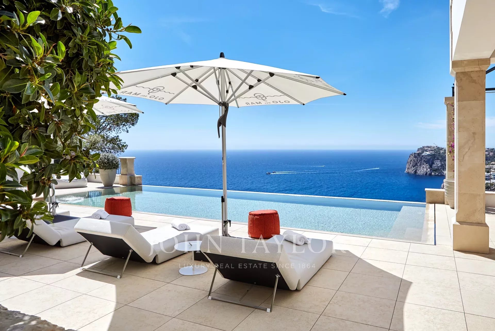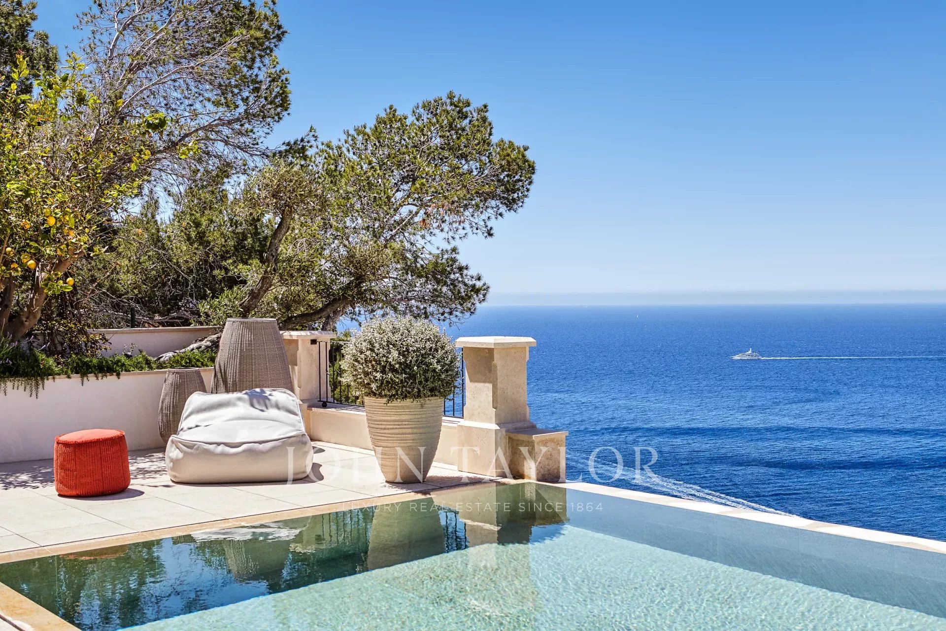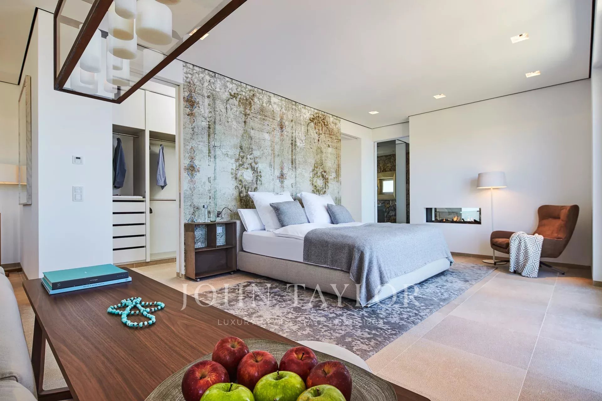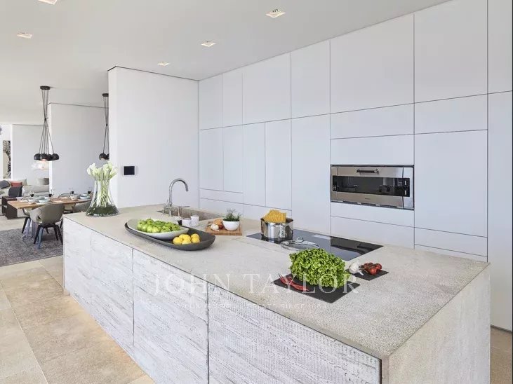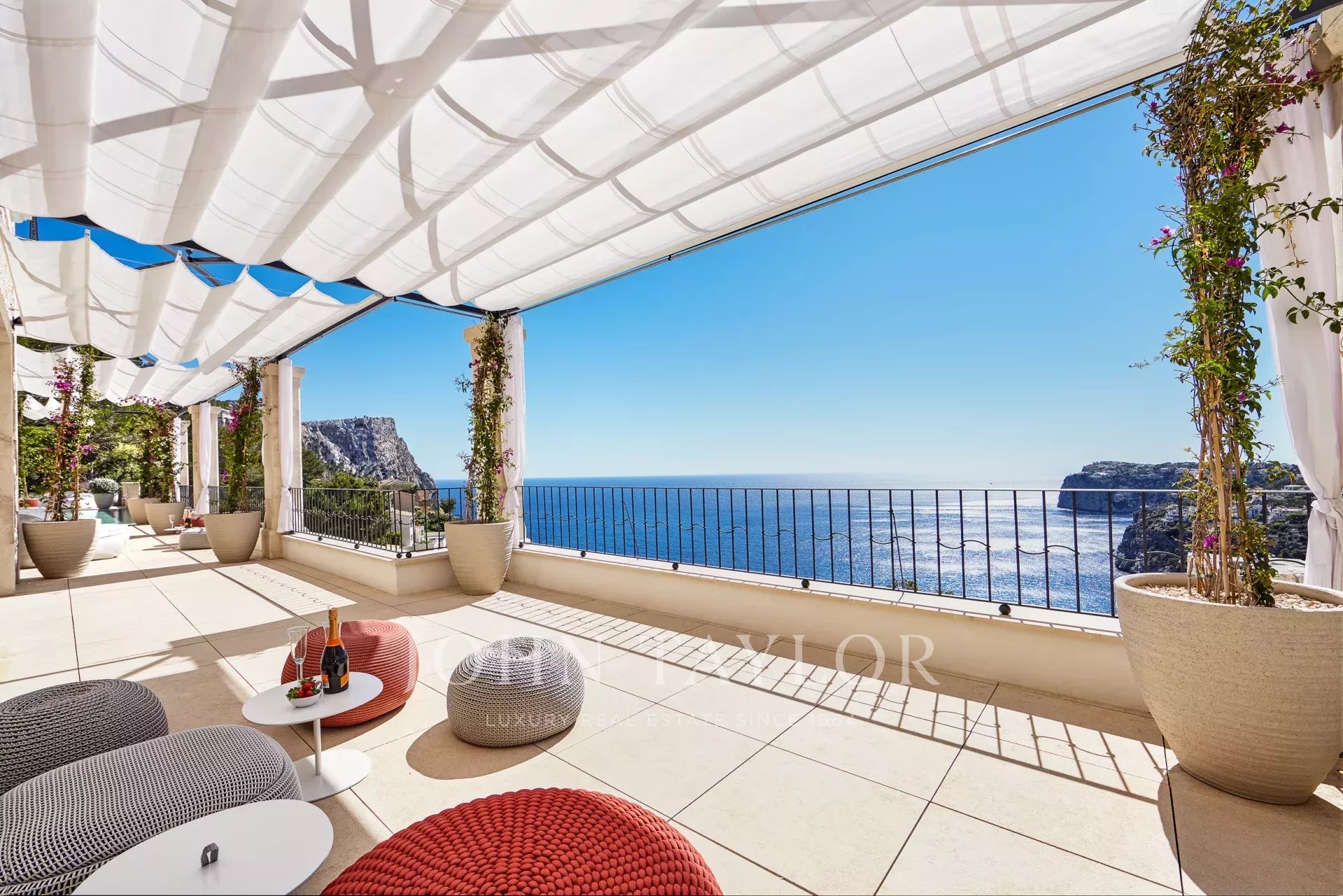 Tato luxusní nemovitost se nachází ve vyhledávané lokalitě nad zálivem Cala Llamp a nabízí úchvatný panoramatický výhled na moře. Vila má zastavěnou plochu 700 m2 na třech úrovních. V přízemí se nachází elegantní vstupní hala, která vede do televizního salonu, obývacího pokoje, jídelny a kuchyně. Prostorný obytný prostor je rozšířen přes pergoly na terasy, kde se nacházejí dvě venkovní kuchyně s grily a velkým jídelním stolem a také koupelna. Další zajímavostí je nekonečný bazén o rozloze 60 m2. Venkovní prostor je navržen tak, abyste si mohli dokonale vychutnat středomořské klima. Do horního patra se dostanete výtahem nebo po elegantně osvětleném schodišti, kde se nachází spací část. Ta se skládá ze dvou ložnic s vlastními koupelnami a pohodlného hlavního apartmá. To se skládá z předsíně, prostorné spací části a luxusní koupelny s vanou v arkýři. V suterénu se kromě garáže o rozloze 100 m2, která nabízí místo pro nejméně 5 aut, nachází vinárna, fitness se saunou, domácí kino, služební ložnice s vlastní koupelnou, další koupelna, prádelna, technická místnost a sklad. Nemovitost se prodává včetně nábytku.