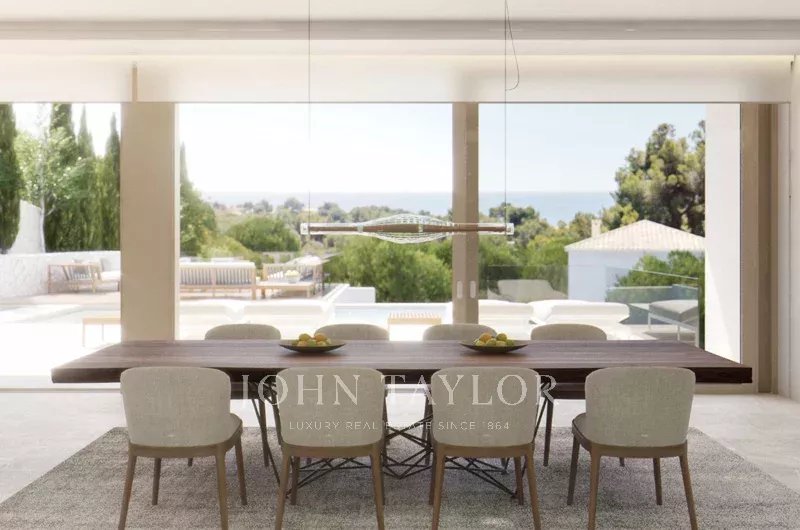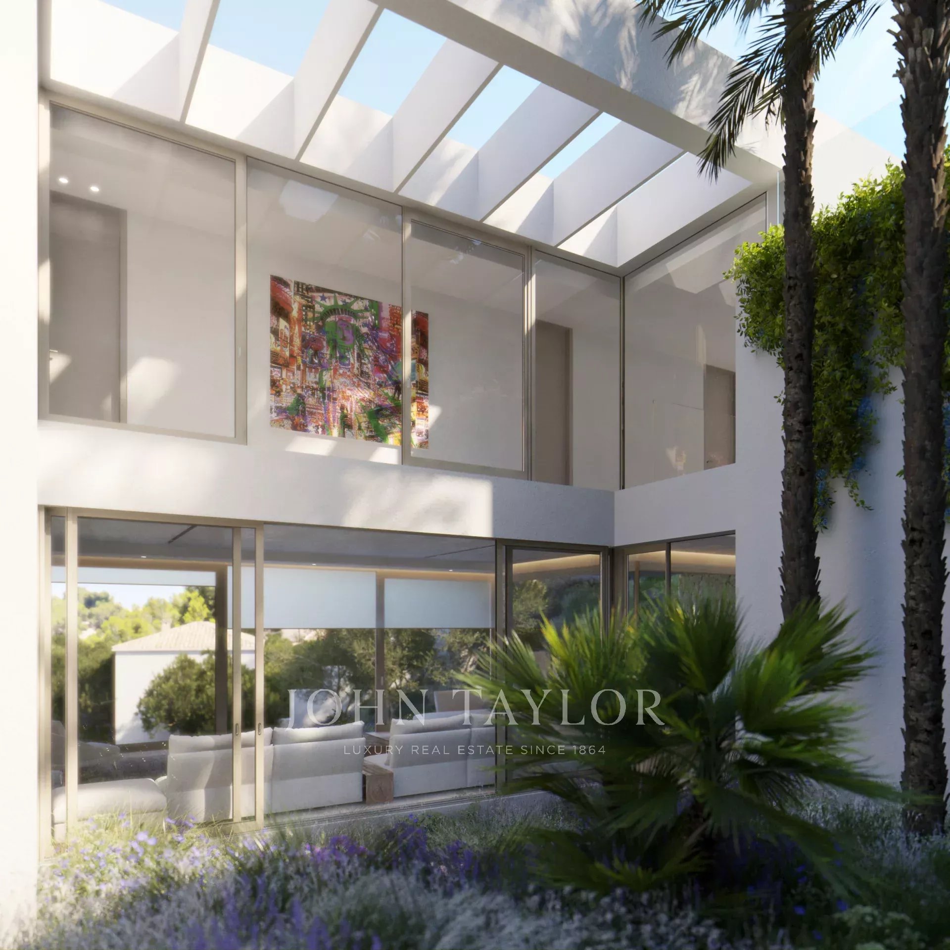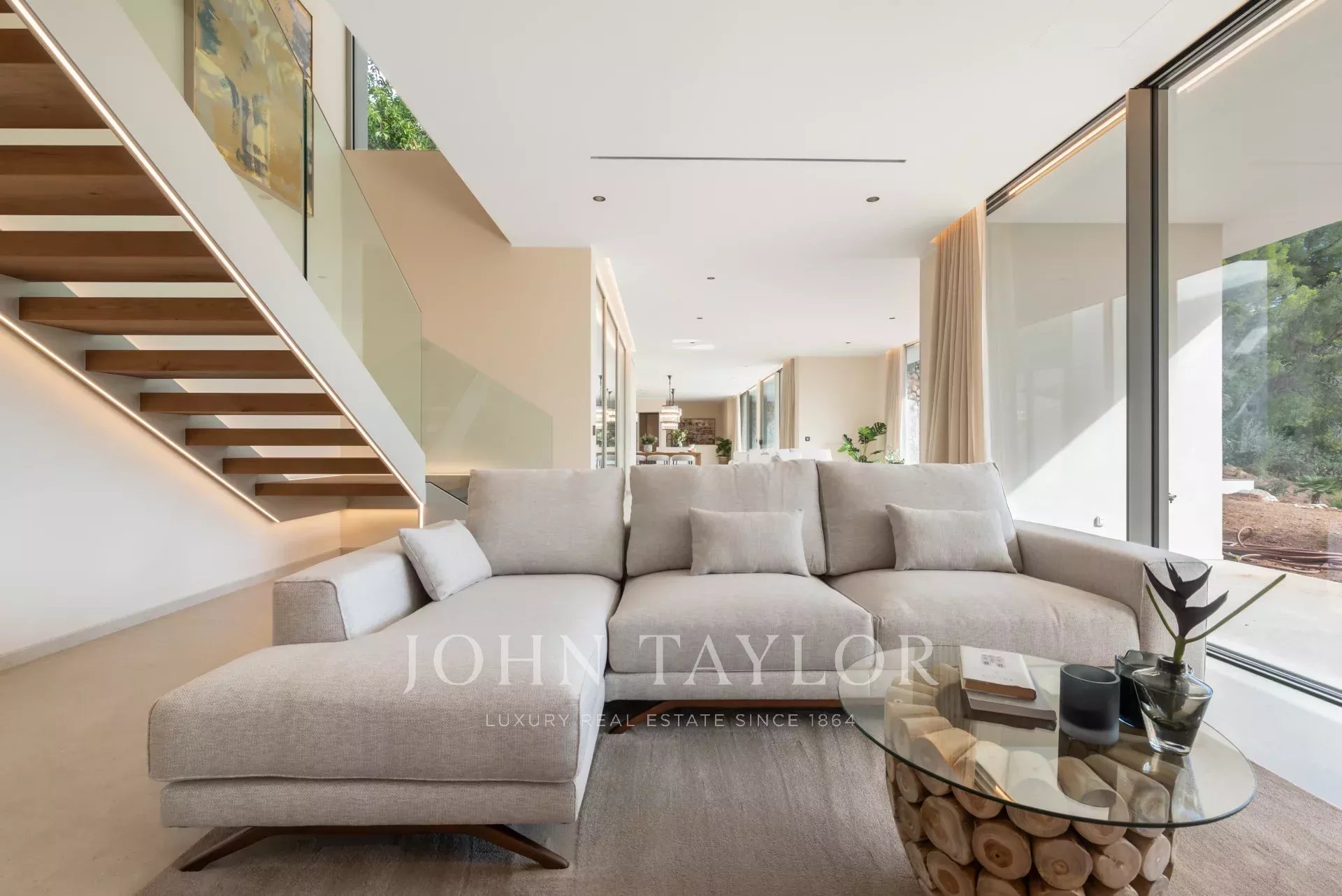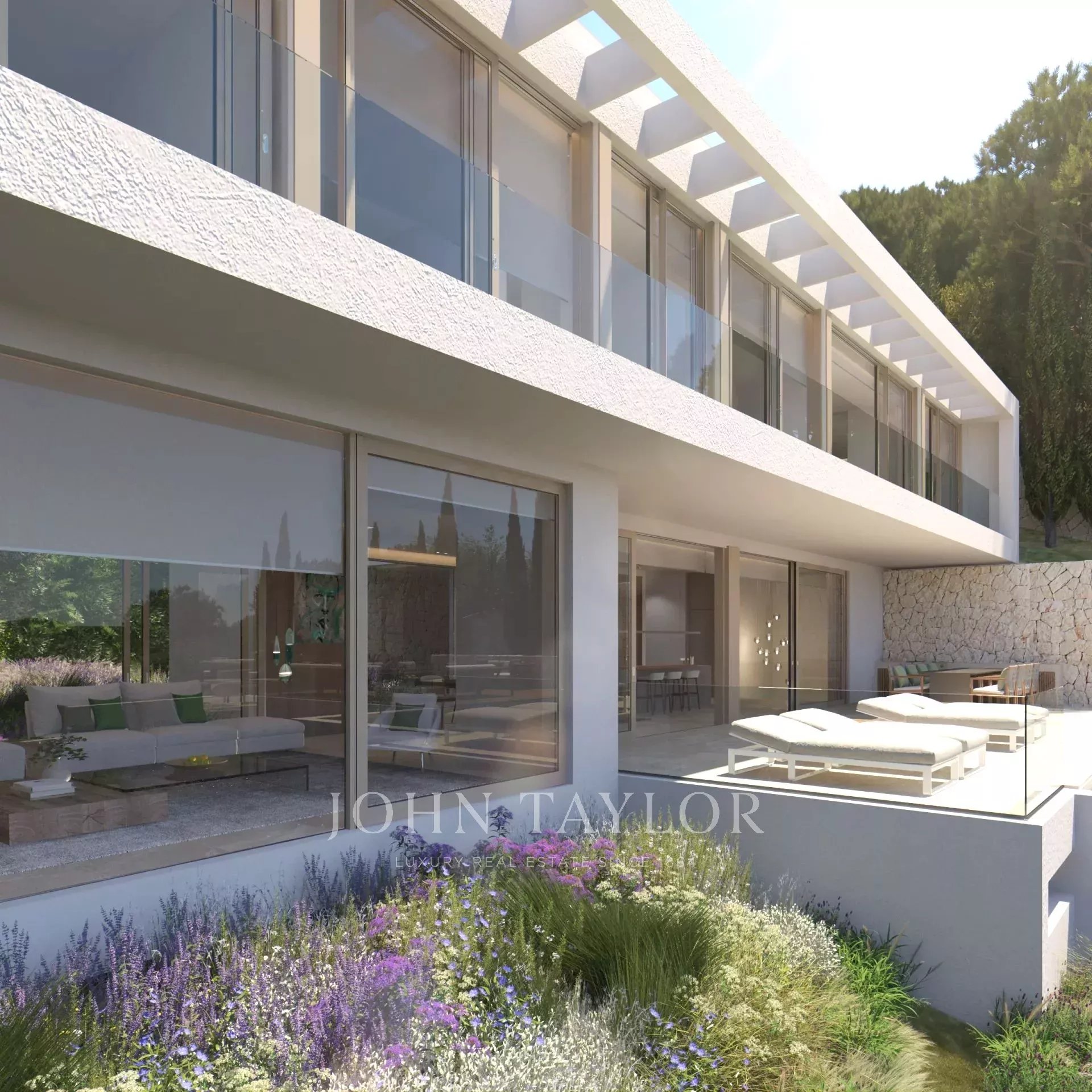 Představujeme vám tuto exkluzivní vilu moderního designu, která se nachází v nejvyhledávanější oblasti Puerto Portals a je připravena k nastěhování. Výjimečná rezidence kombinující moderní architekturu, středomořskou eleganci a panoramatický výhled na moře nabízí maximální komfort v privilegovaném prostředí. Na pozemku o rozloze přibližně 1 328 m² má tato vila obytnou plochu přibližně 680 m², která je stylově a jasně rozdělena. V hlavním patře se nachází vstupní prostor a pět prostorných ložnic s vlastní koupelnou, všechny s nádherným výhledem na moře a přímým vstupem na soukromé terasy. V patře je 5 ložnic s vlastním příslušenstvím. V přízemí se nachází elegantní obývací prostor s otevřeným konceptem, plně vybavená designová kuchyně se špičkovými materiály a jídelním koutem, druhá pomocná kuchyně, toaleta pro hosty a ložnice s koupelnou en suite. Prostorné terasy a nekonečný bazén vytvářejí dokonalé prostředí pro celoroční užívání si mallorského venkovního životního stylu. Ve spodní úrovni vily se nachází soukromý kinosál, posilovna, prádelna a technická místnost a také garáž pro několik vozidel. Mezi její četné funkce patří podlahové vytápění, klimatizace, systém úpravy vody, výtah, pokročilá domácí automatizace, pečlivě navržené LED osvětlení, automatický zavlažovací systém, vysoce kvalitní izolační zasklení a také velkolepý bazén a soukromá tělocvična. Vila, v níž se snoubí luxus, soukromí a design, a nabízí tak jedinečný zážitek z bydlení v jedné z nejexkluzivnějších lokalit na Mallorce.