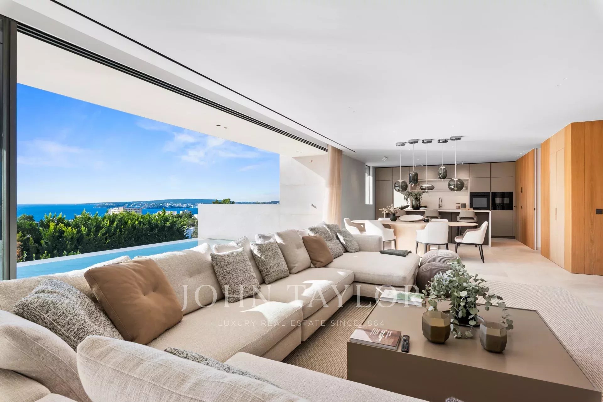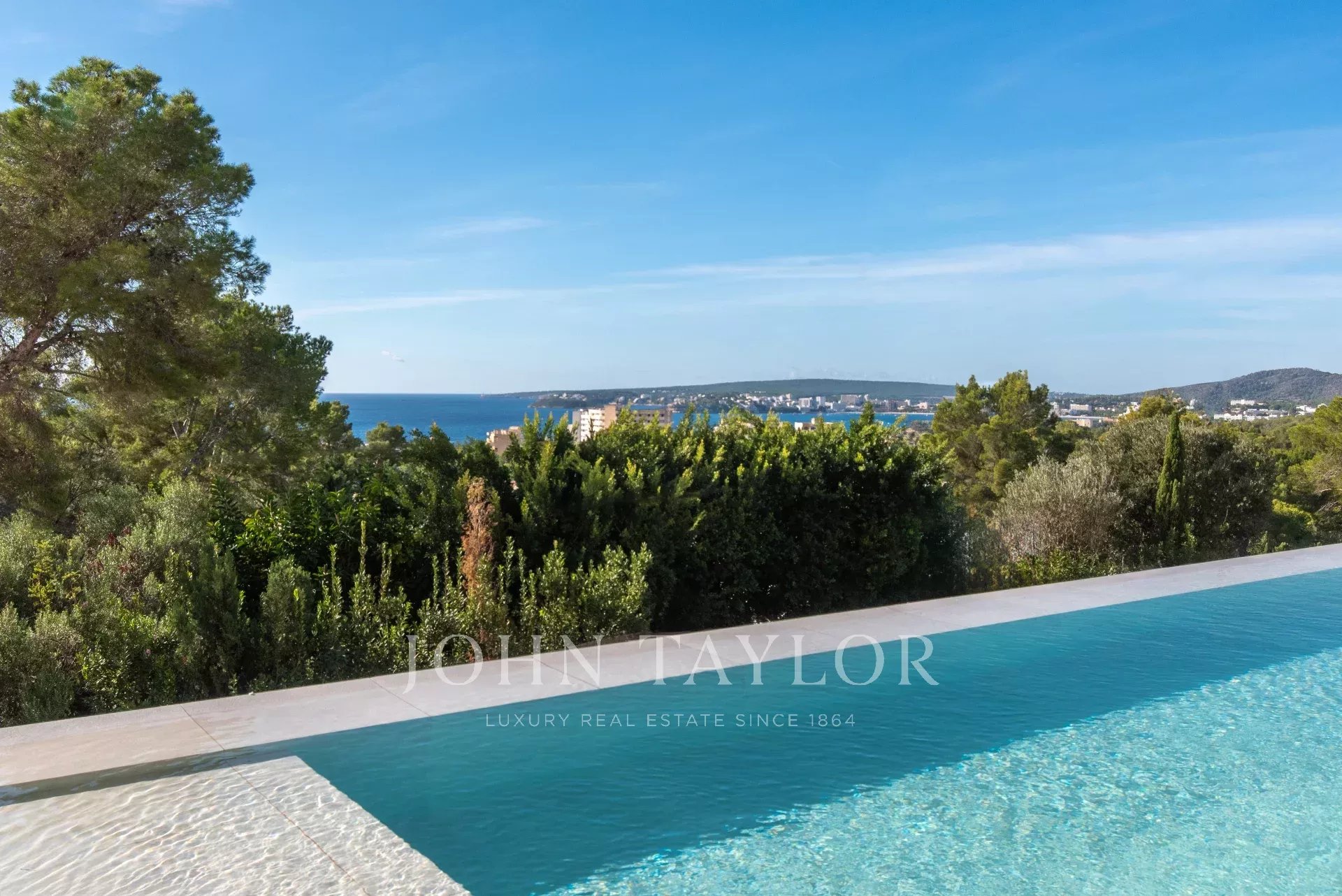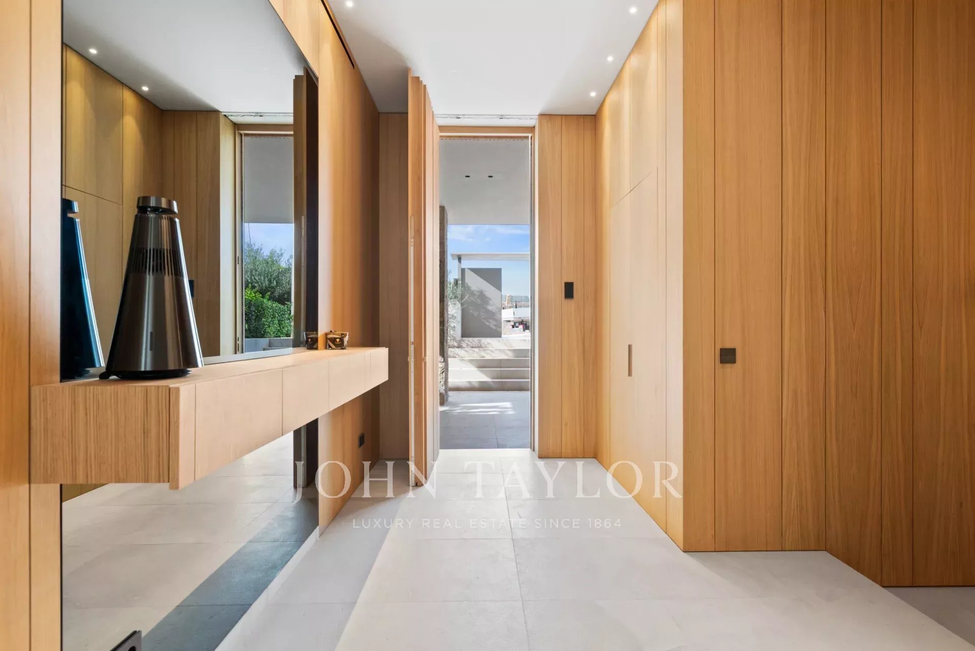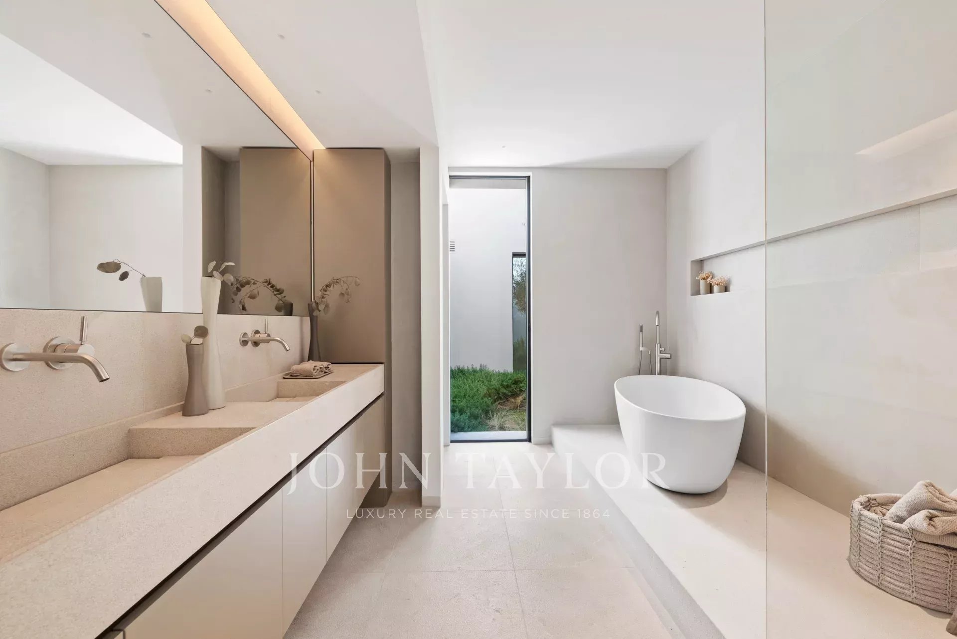 Tato nově postavená luxusní vila se nachází v prestižní čtvrti Portals Nous v pěší vzdálenosti od známého přístavu, na vyvýšeném místě s krásným výhledem na moře. Nádherný dům orientovaný na jihozápad vyniká svou prostorností, moderním stylem a komfortem. Denní část s obývacím pokojem, jídelnou a kuchyní se nachází v horním patře domu a plně využívá výhledů. Dokonale navazuje na terasu, bazén a verandu s grilem. Ve spodním patře se nacházejí 4 ložnice s vlastním sociálním zařízením a pracovna. Uprostřed se nachází terasa, kam se můžete uchýlit v nejteplejších dnech roku. Venku se nachází další terasová část s letní kuchyní a druhý bazén, obklopený svěží zahradou.