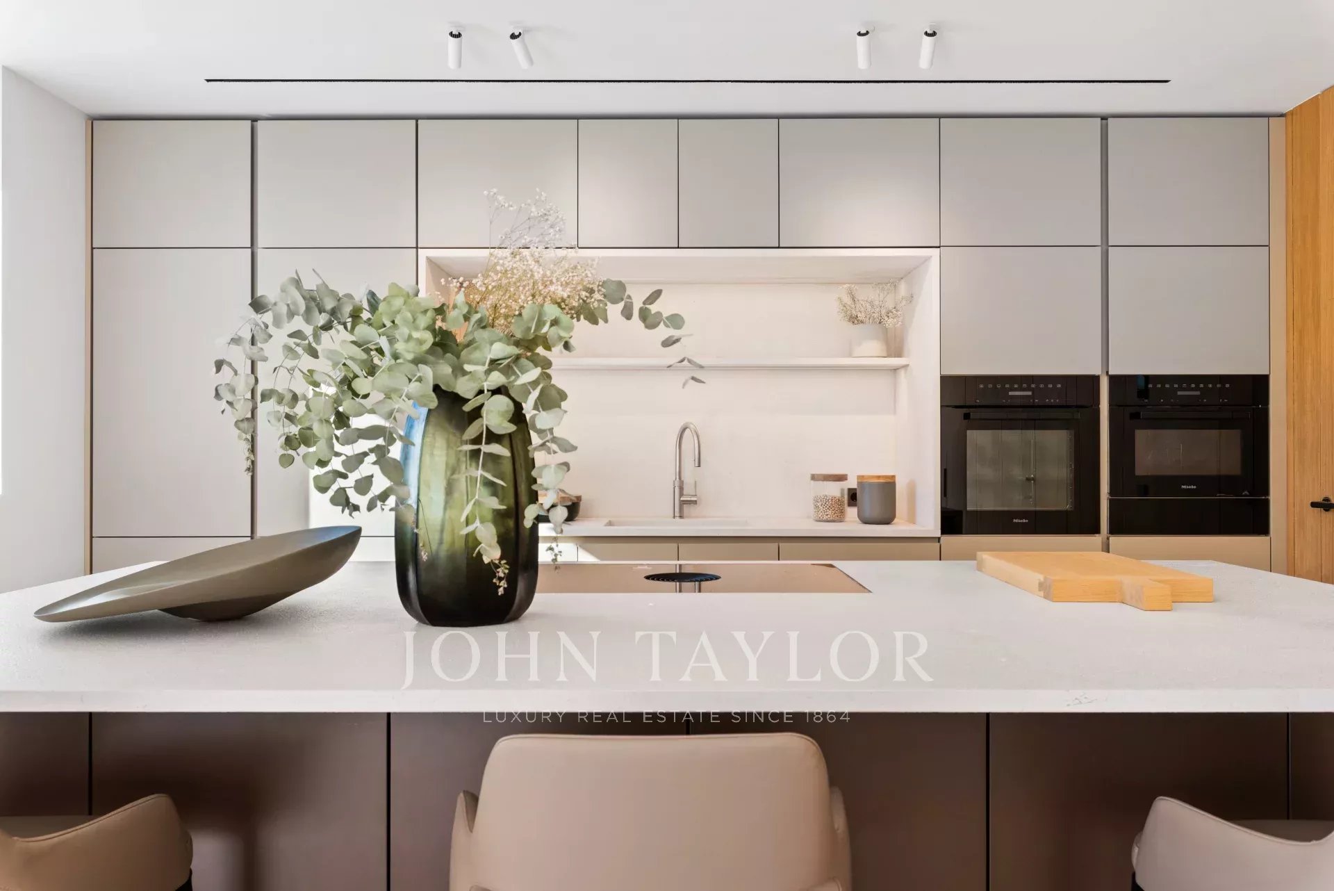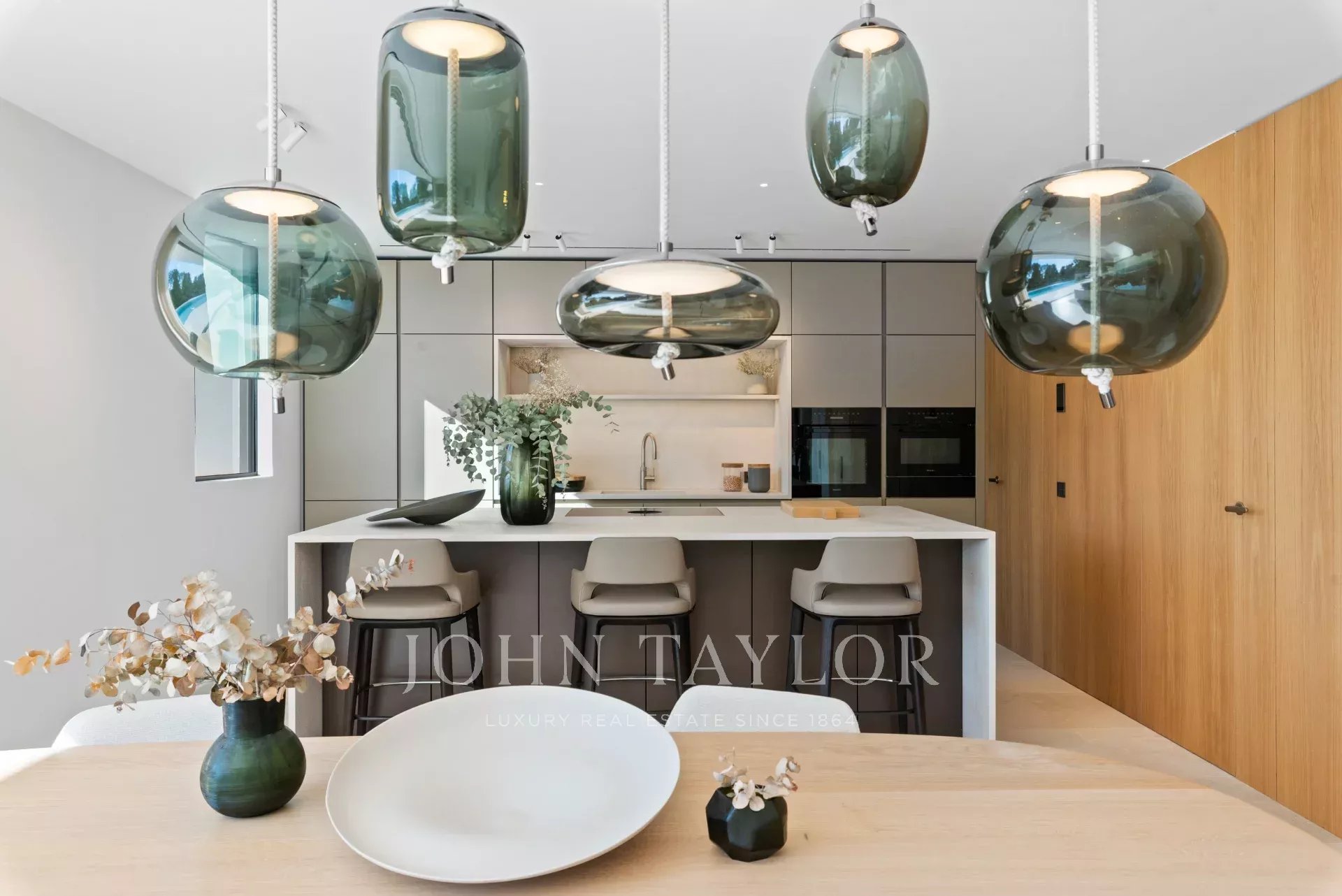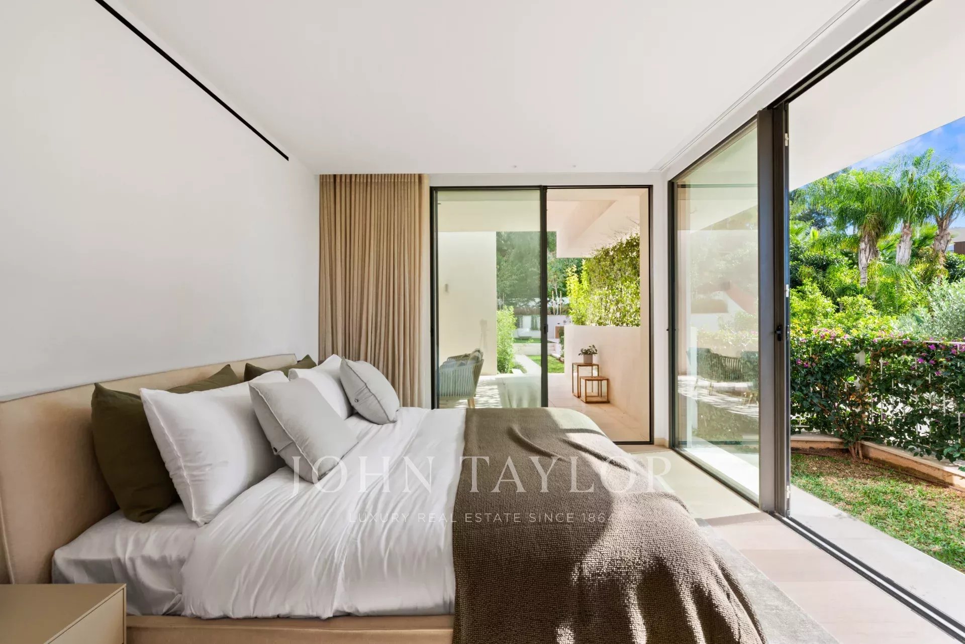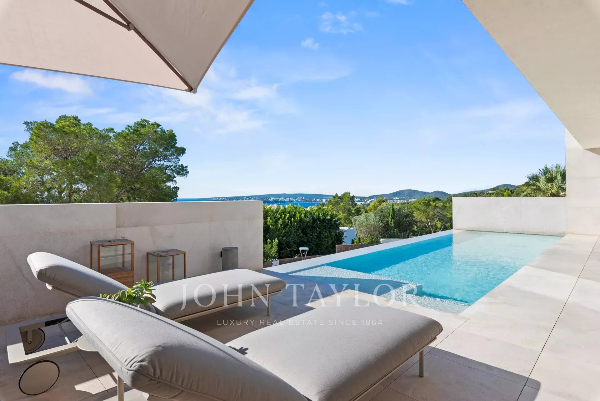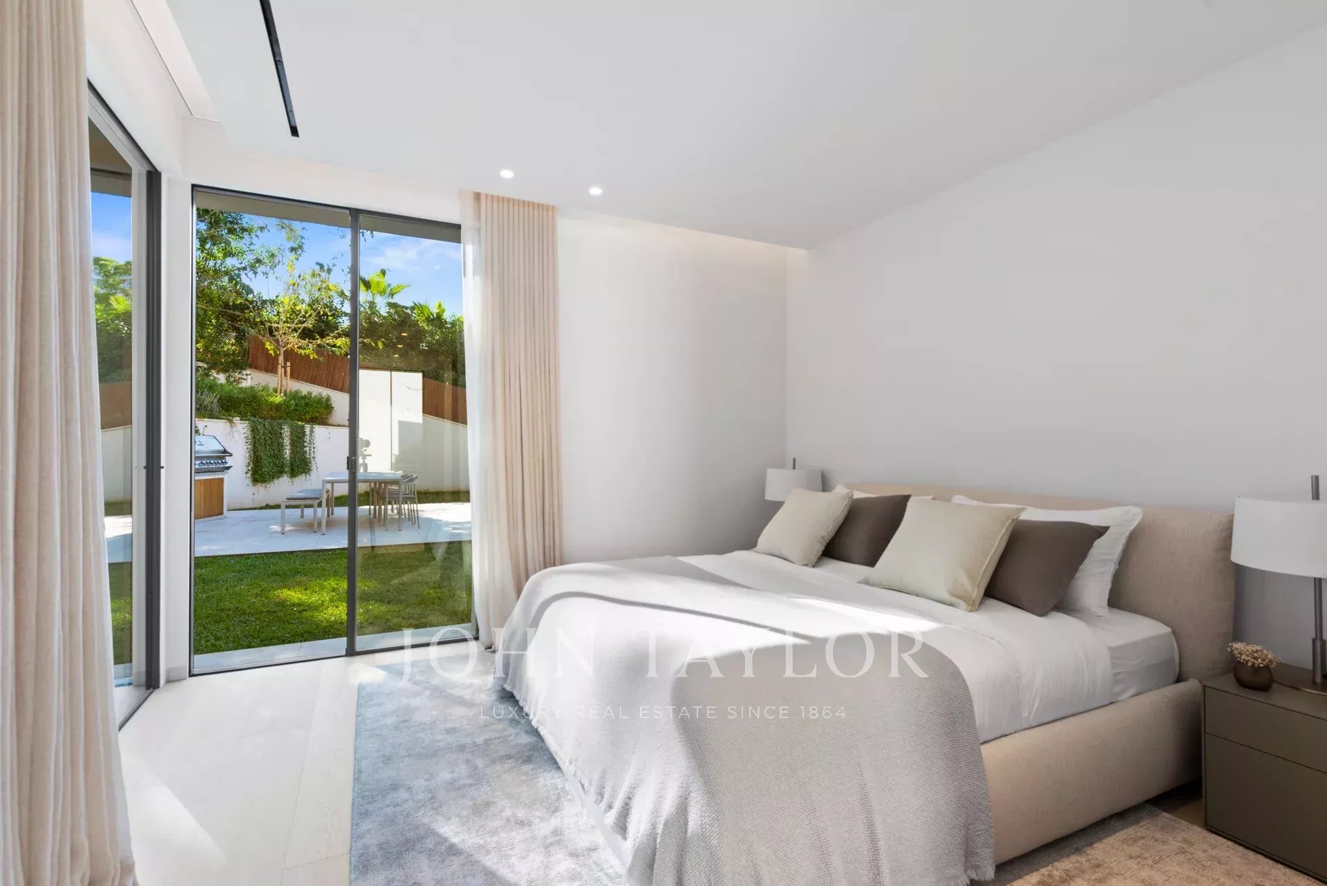 Tato nově postavená luxusní vila se nachází v prestižní čtvrti Portals Nous v pěší vzdálenosti od známého přístavu, na vyvýšeném místě s krásným výhledem na moře. Nádherný dům orientovaný na jihozápad vyniká svou prostorností, moderním stylem a komfortem. Denní část s obývacím pokojem, jídelnou a kuchyní se nachází v horním patře domu a plně využívá výhledů. Dokonale navazuje na terasu, bazén a verandu s grilem. Ve spodním patře se nacházejí 4 ložnice s vlastním sociálním zařízením a pracovna. Uprostřed se nachází terasa, kam se můžete uchýlit v nejteplejších dnech roku. Venku se nachází další terasová část s letní kuchyní a druhý bazén, obklopený svěží zahradou.