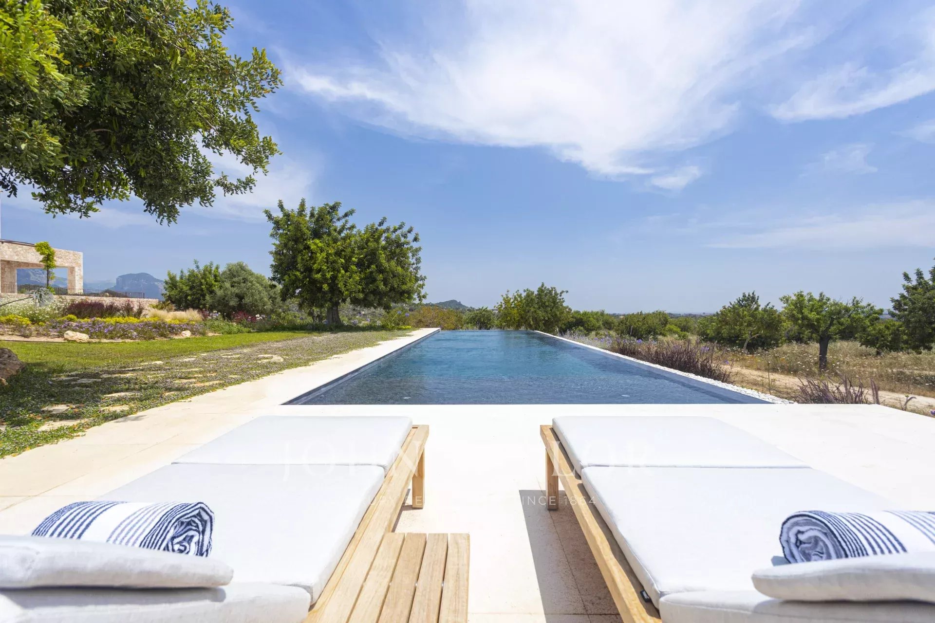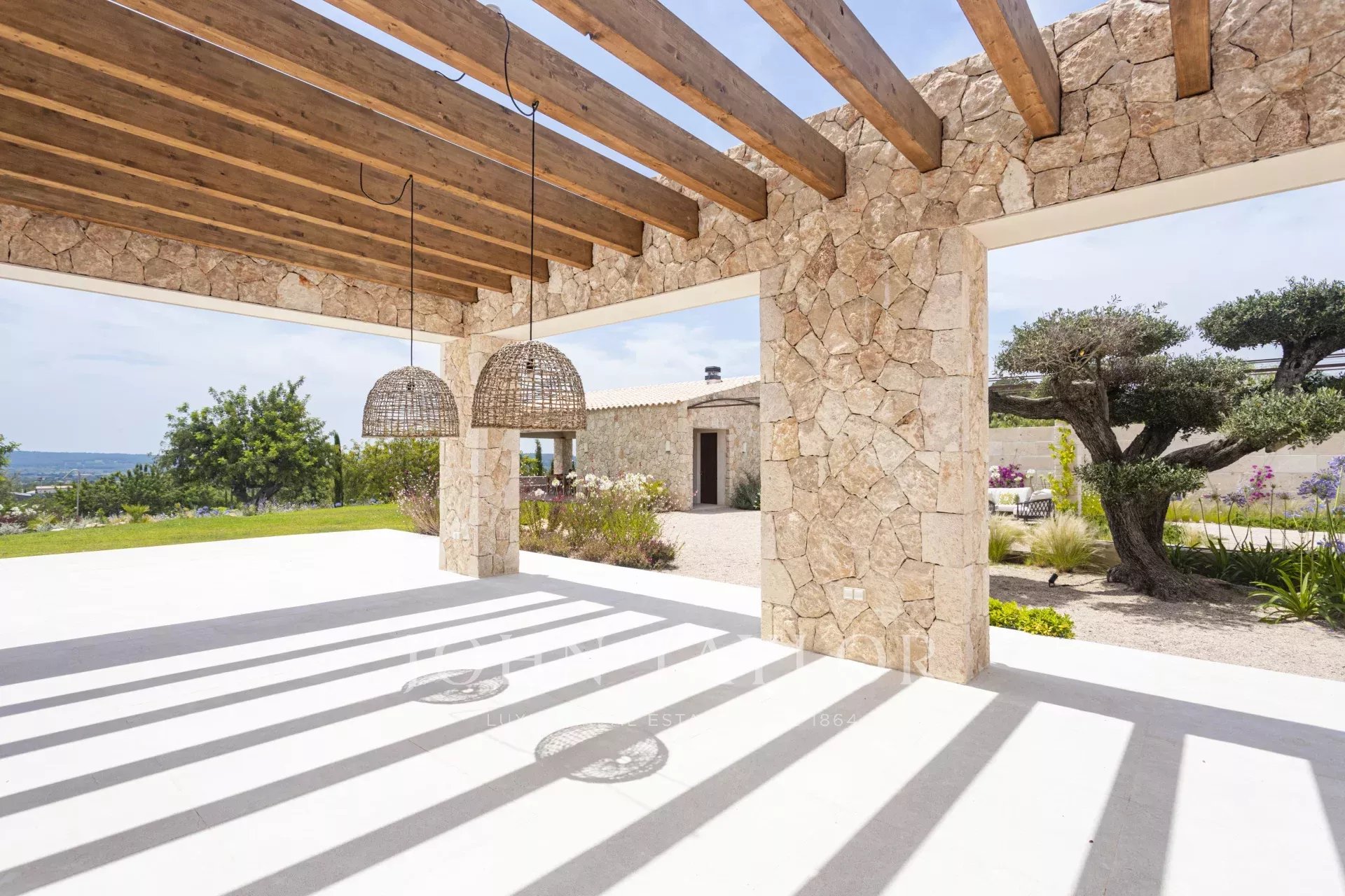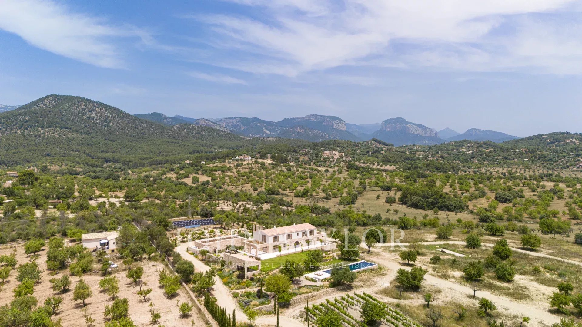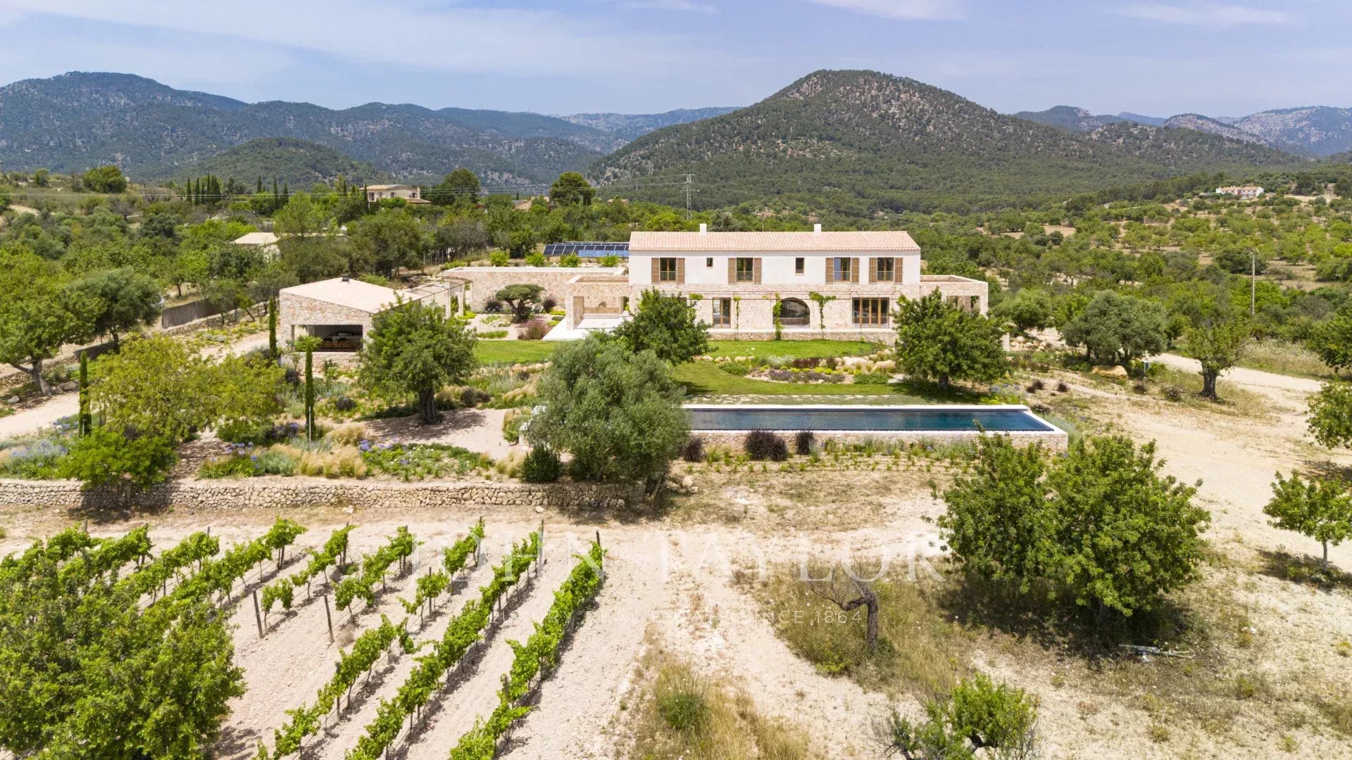 Sídlo "Son Blai" se rozkládá na prostorném pozemku s úchvatným panoramatickým výhledem na soukromou vinici, volnou krajinu a majestátní pohoří Tramuntana a je ideální pro ty, kteří hledají soukromí, přírodu a vytříbenou kultivovanost - jen kousek od Palmy de Mallorca.