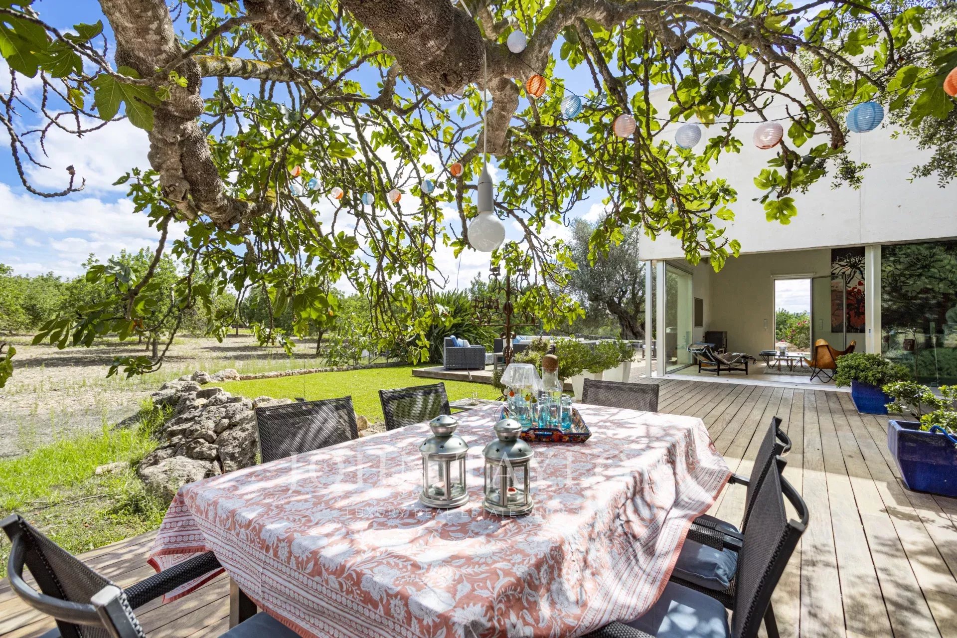 Prostorné terasy obklopující oba domy vybízejí k užívání středomořského klimatu a pořádání rodinných či společenských setkání v privilegovaném přírodním prostředí. Usedlost je téměř soběstačná díky vlastnímu vrtu na vodu a solárním panelům, které zásobují obě rezidence teplou vodou, což posiluje její udržitelný a exkluzivní charakter.