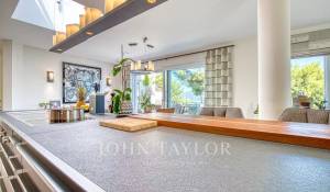 Tato atraktivní rodinná vila s výhledem na moře byla na začátku roku 2017 zrekonstruována podle nejnovějších stavebních standardů a z vysoce kvalitních materiálů. Nachází se v jedné z nejlepších exkluzivních rezidenčních oblastí, v La Ensaimada. Na vstupní úrovni se nachází velký obývací pokoj s jídelnou a otevřenou luxusní kuchyní značky Leicht se spotřebiči Gaggenau a Miele, na kterou navazuje spíž a druhá kuchyně. Z obývacího pokoje je v přízemí přístup na velkou terasu s výhledem na moře a vyhřívaný bazén. Dále se na této úrovni nachází hlavní ložnice s vlastní koupelnou a šatnou, komora a také pracovna a toaleta pro hosty. Spodní patro nabízí další 2 dvoulůžkové ložnice s koupelnami, další koupelnu a tělocvičnu se saunou, kterou lze přestavět na čtvrtou ložnici, a také garáž o rozloze 38 m2 přístupnou z domu. Dalšími prvky jsou klimatizace h/c, podlahové vytápění s tepelným čerpadlem, hliníková okna s dvojitým zasklením, žaluzie, počítačem řízený systém domu, alarm a interkom, osmotický systém, odkalovací systém a také internet.