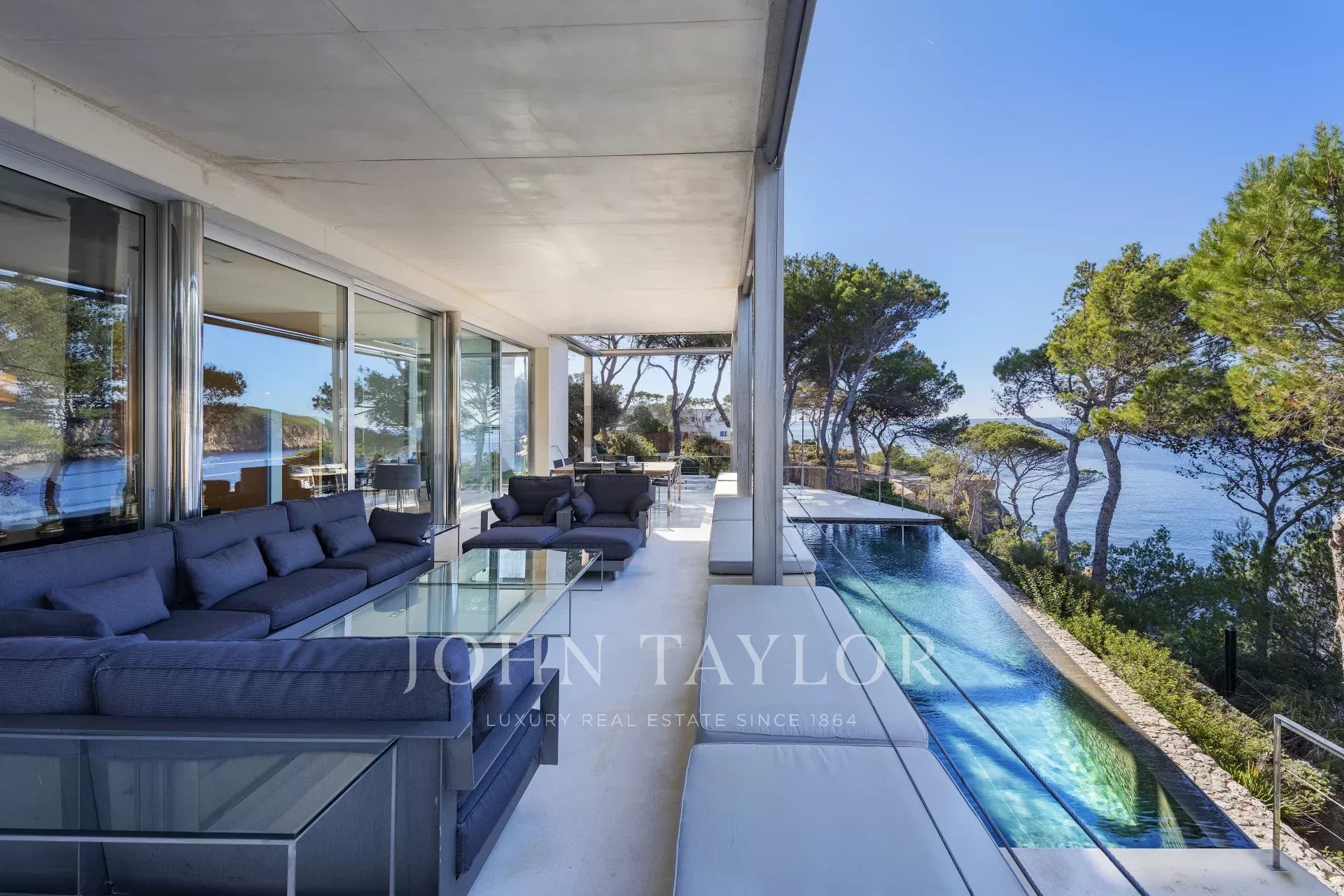 Tato nádherná vila v první linii o rozloze 770 m2 nabízí nádherný výhled na moře, ostrovy Malgrats a přímý přístup k moři s plošinou s 15letou pobřežní koncesí. Vila se nachází v těsné blízkosti supermariny, přístavu Port Adriano, čtyř nedalekých golfových hřišť a pouhých 25 minut od elegantního hlavního města a letiště Mallorky. Optimální komfort, dostatek prostoru, světlý a moderní design interiéru s otevřenými obývacími a jídelními prostory a plynulé přechody do venkovních prostor dodávají vile dokonalou atmosféru pro středomořský životní styl. V této vile bylo myšleno opravdu na vše: obytné prostory jsou pohodlně propojeny. V patře se kromě velkorysého hlavního apartmá s vlastním obývacím pokojem nacházejí další čtyři ložnice s vlastními koupelnami. V přízemí se pak nachází další apartmá s vlastní koupelnou a dvě ložnice se společnou koupelnou ideální pro personál. Prostorná kuchyně, obývací pokoj a jídelna. Celkem 6 ložnic s vlastním sociálním zařízením a 2 pokoje pro personál s koupelnami.