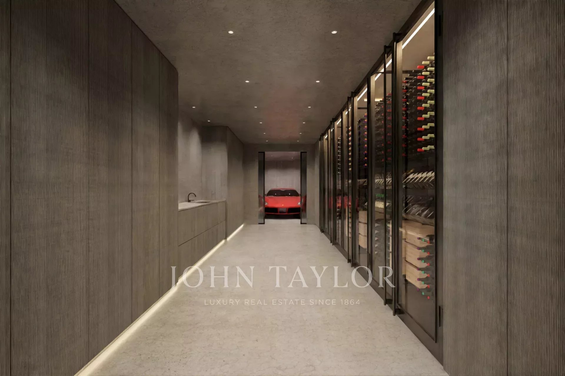 V suterénu o rozloze přibližně 320 m² se nachází garáž pro tři auta, spíž a vinný sklípek. Tento rozsáhlý prostor lze přizpůsobit různým potřebám: od wellness nebo soukromého kinosálu až po šestou ložnici s vlastní koupelnou.