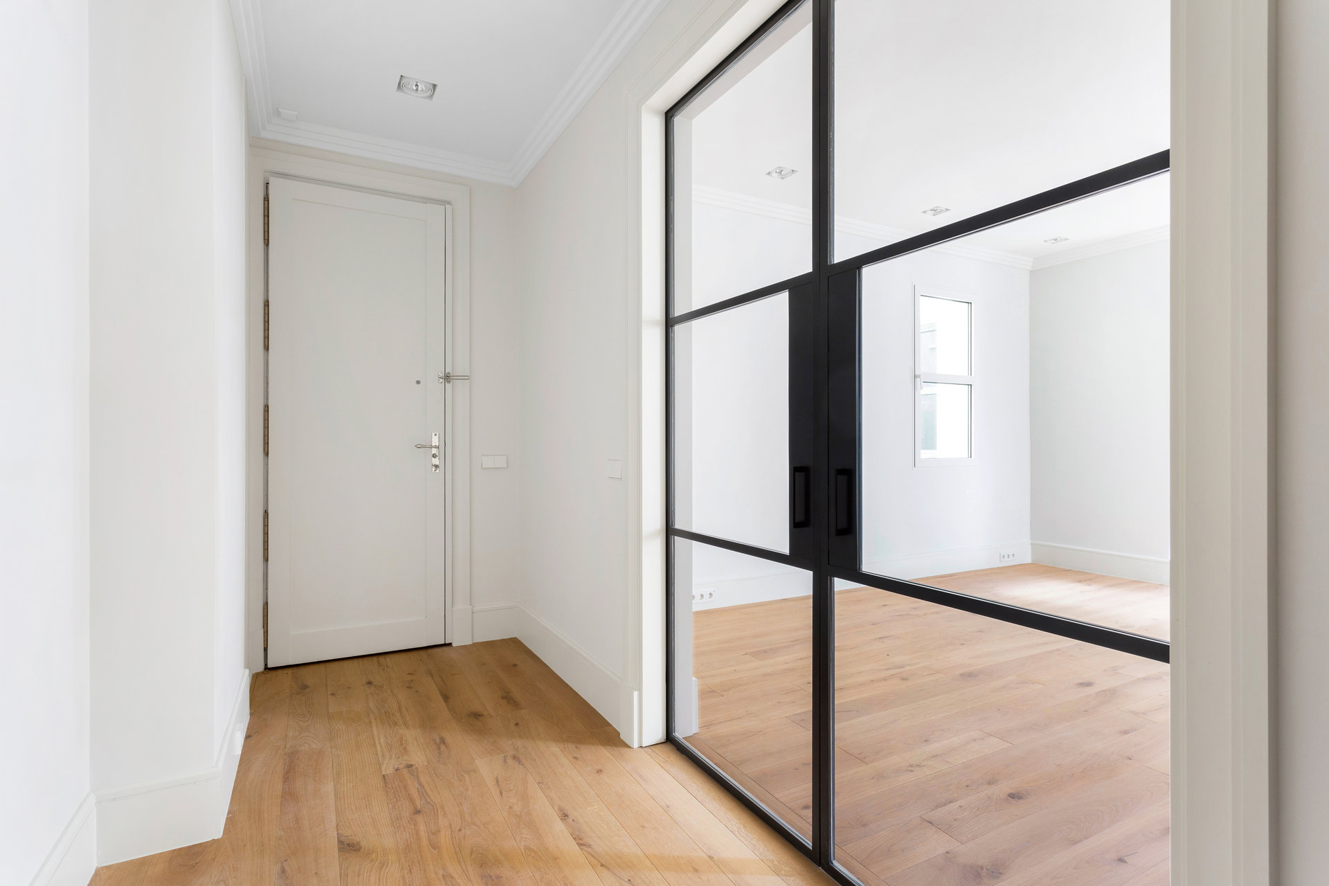 Exkluzivní nový byt se nachází v klidném a světlém interiéru pátého patra, v elegantní klasické budově se službou concierge, v jedné z nejvyhledávanějších ulic čtvrti Almagro.