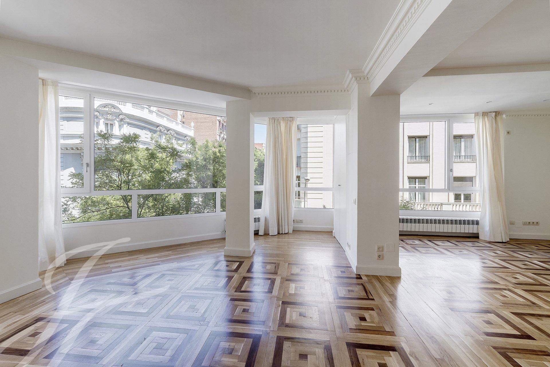 Klid a elitnost oblasti, blízkost nejlepší oblasti Barrio de Salamanca, světlo, luxus garážového stání v objektu a bezpečnost samotné ulice činí z této nemovitosti jedinečnou příležitost.