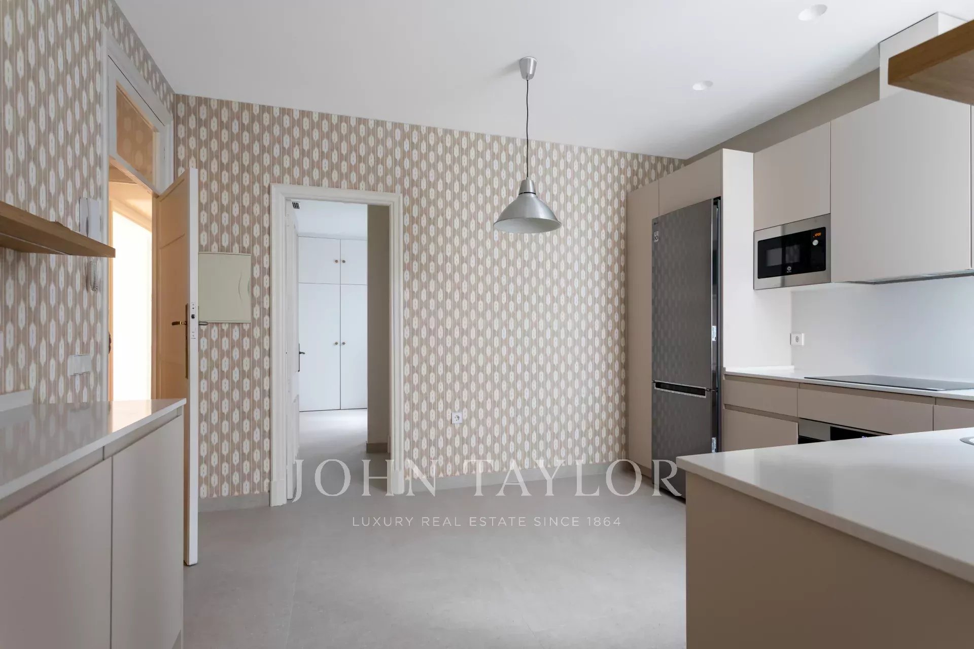 John Taylor představuje tento krásný byt v impozantní budově z 30. let 20. století s krásnou fasádou a reprezentativním vchodem. Nemovitost se nachází v rohovém pátém patře, se 7 velkými okny s výhledem do ulice, takže se těší fantastickému přirozenému světlu ve všech místnostech.