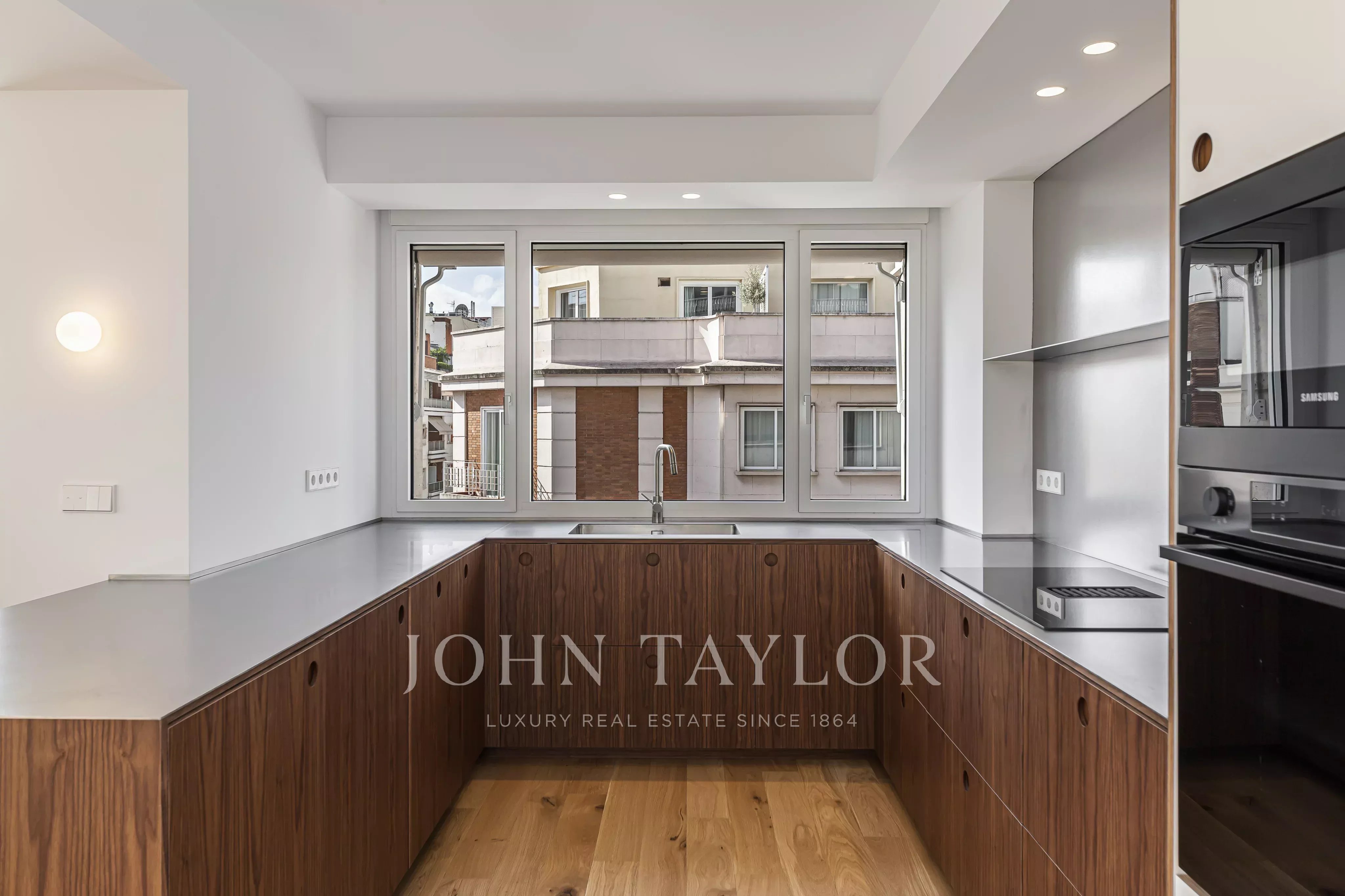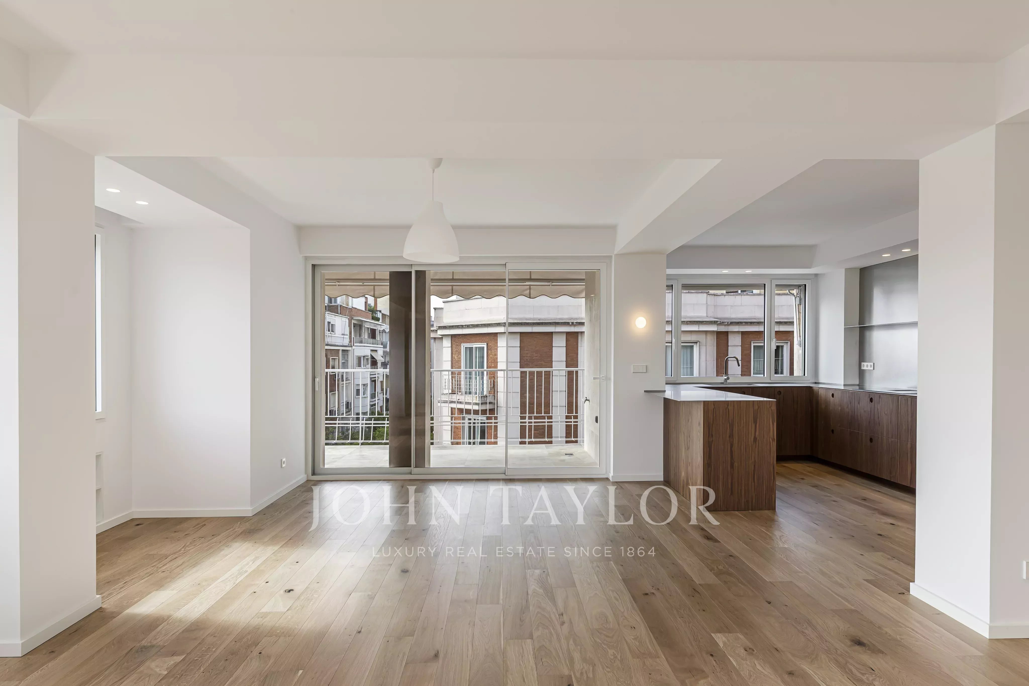 Elegantní nový byt po pečlivé celkové rekonstrukci, umístěný v šestém patře výrazné klasické budovy v Chamberí, jedné z nejžádanějších oblastí Madridu.