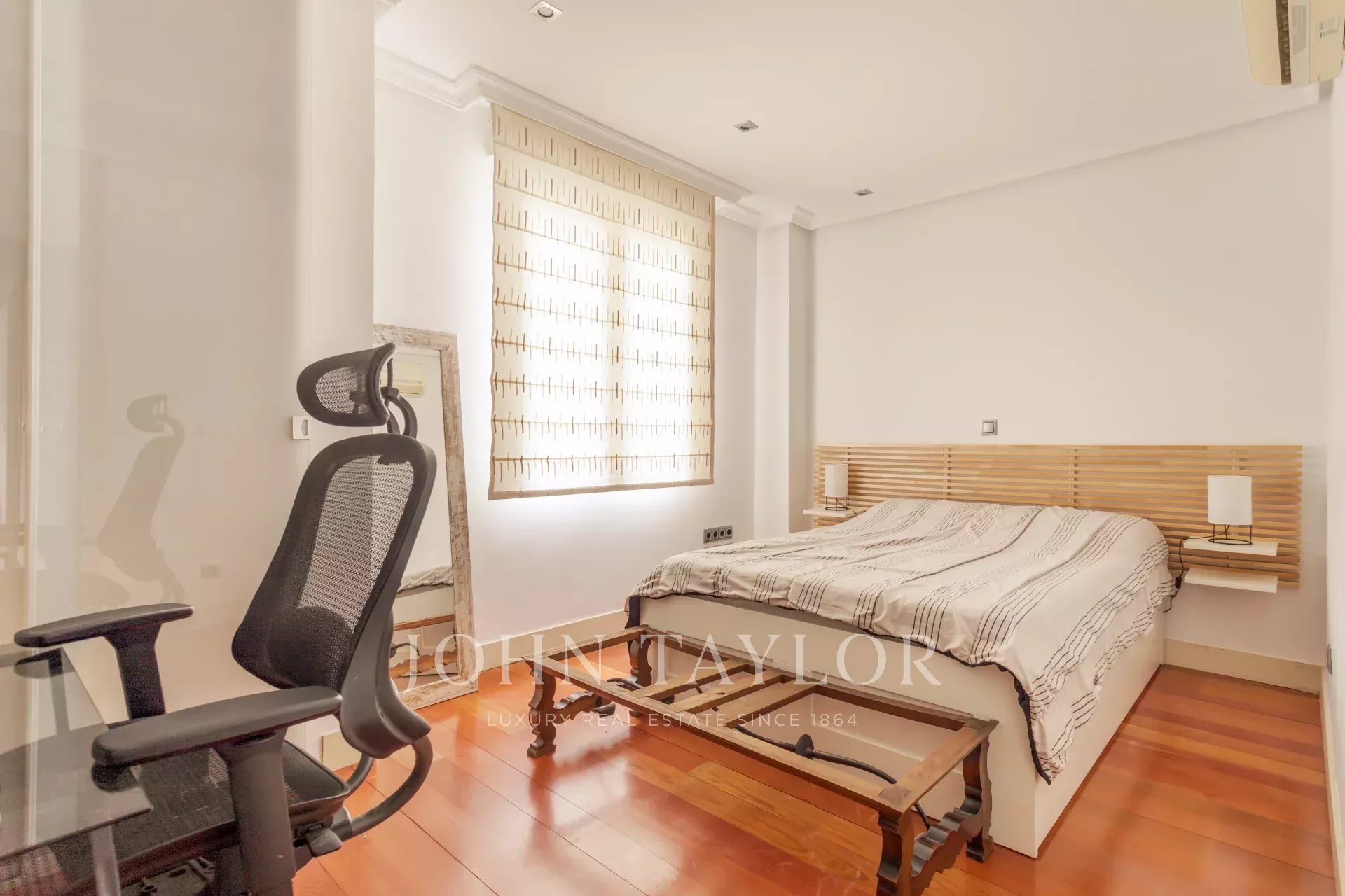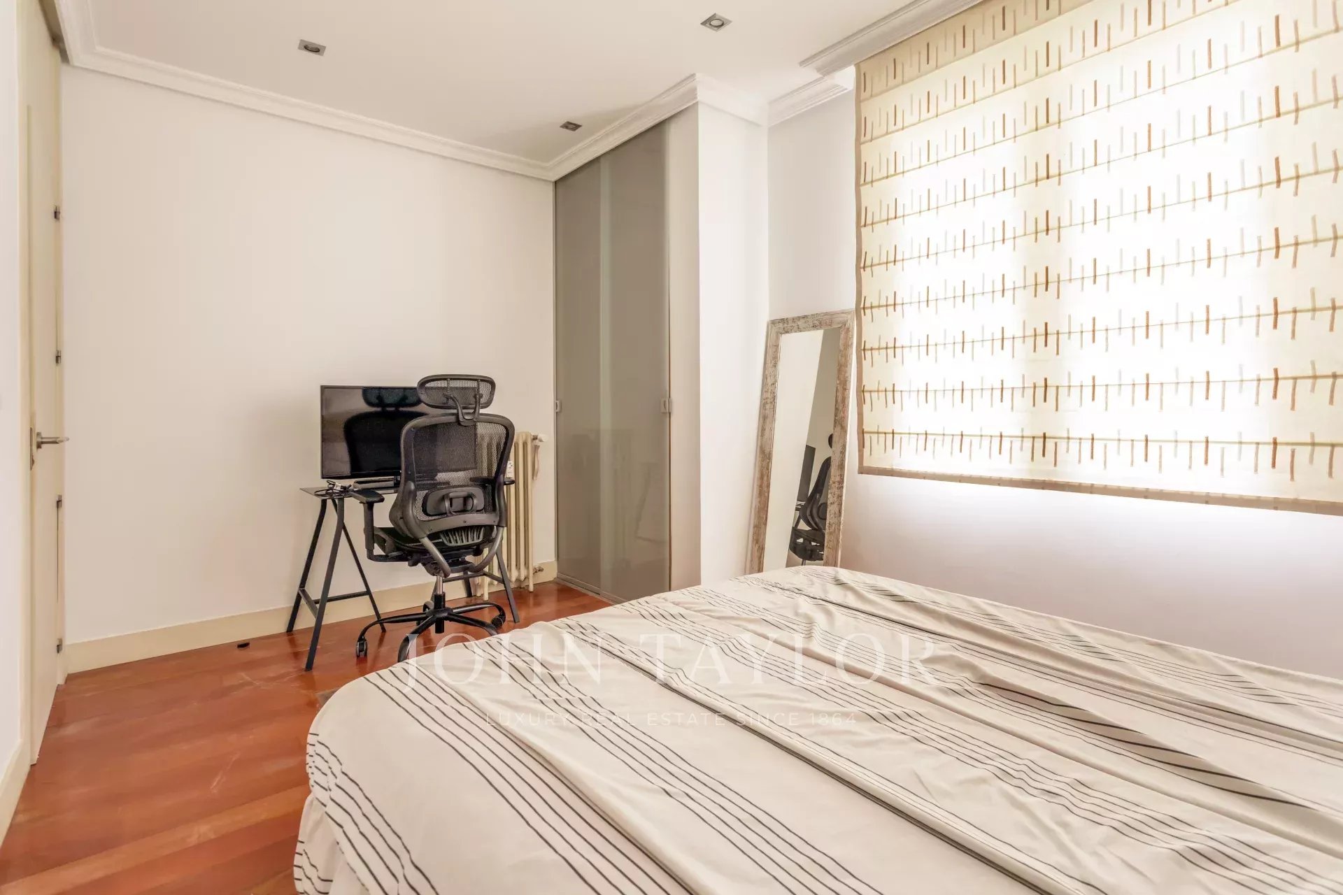 John Taylor vás zve k prohlídce tohoto světlého a přehledného bytu o rozloze 180 m² v Madridu, který nabízí čtyři pečlivě zařízené pokoje, ideální pro rodiny nebo skupiny, které hledají kvalitu a pohodlí. Klimatizace a dvojitá okna zajišťují klidnou atmosféru v každém ročním období.