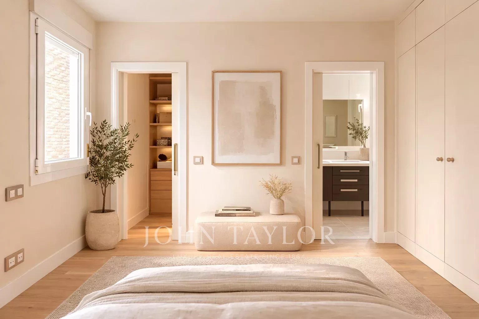 V prostoru pro spaní se nachází hlavní ložnice s vlastní koupelnou, dvěma vestavěnými skříněmi a další šatnou. Hlavní koupelna, velmi světlá díky vnějšímu oknu, má mramorový sprchový kout a dvojité umyvadlo.