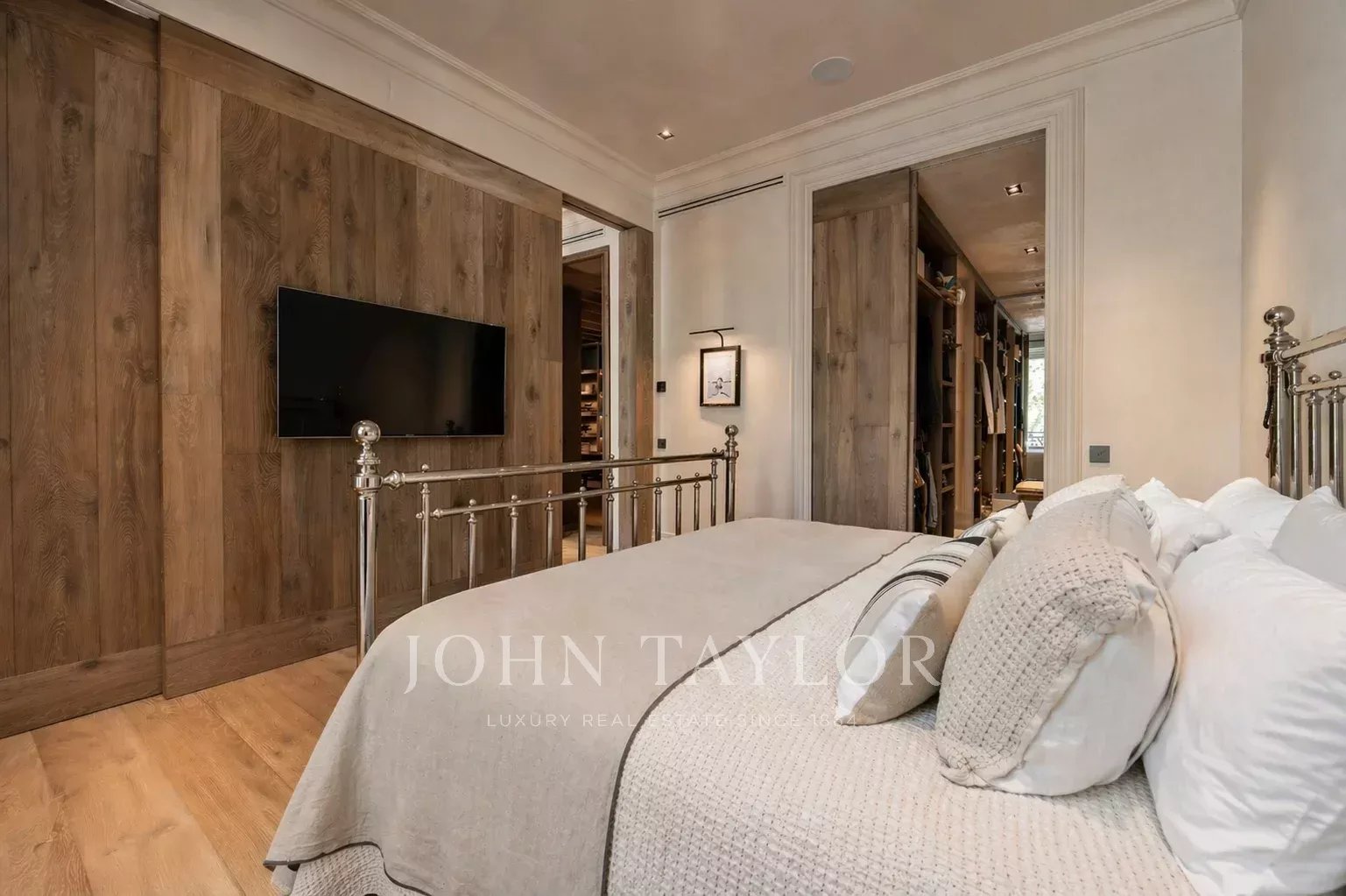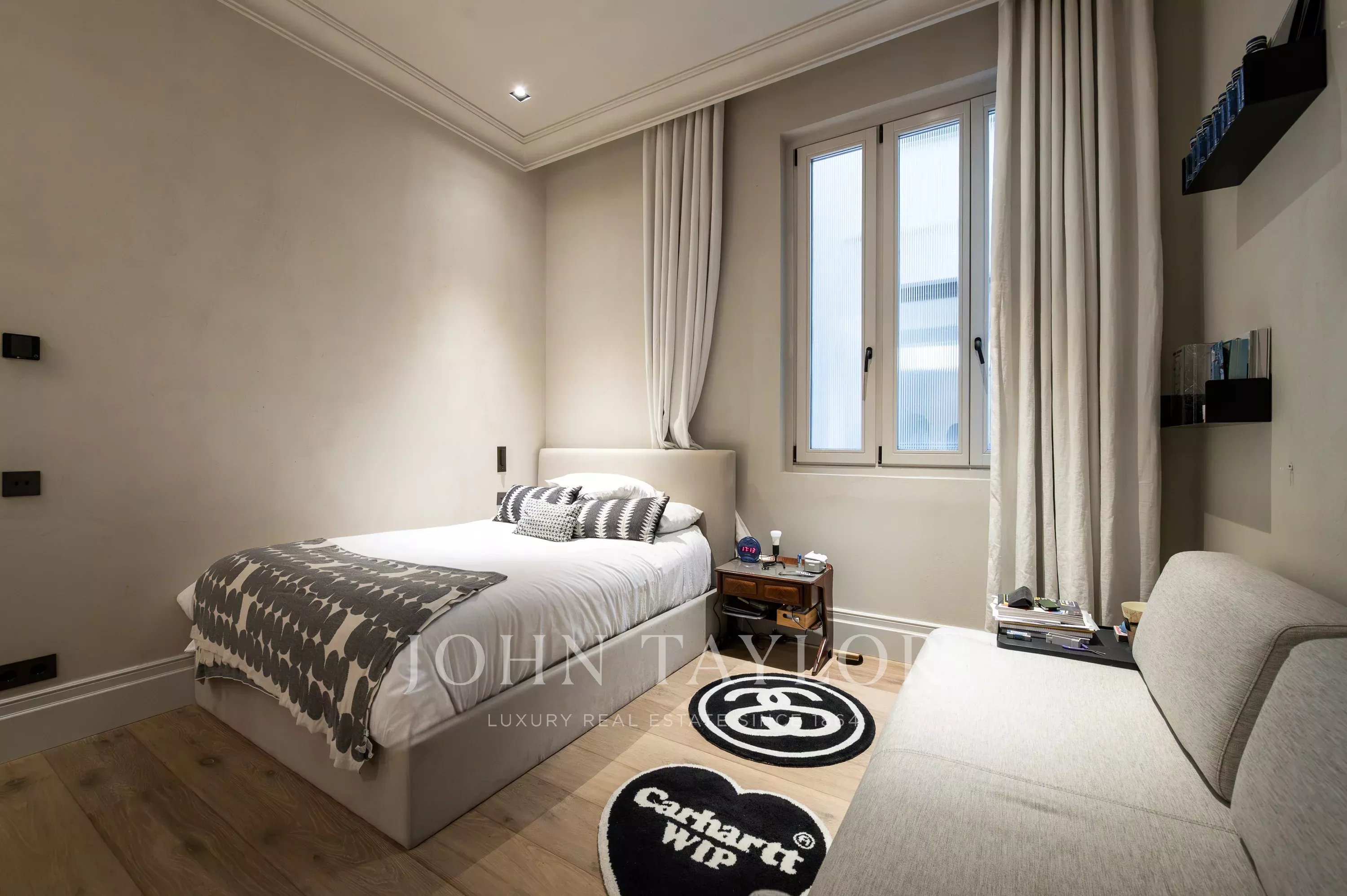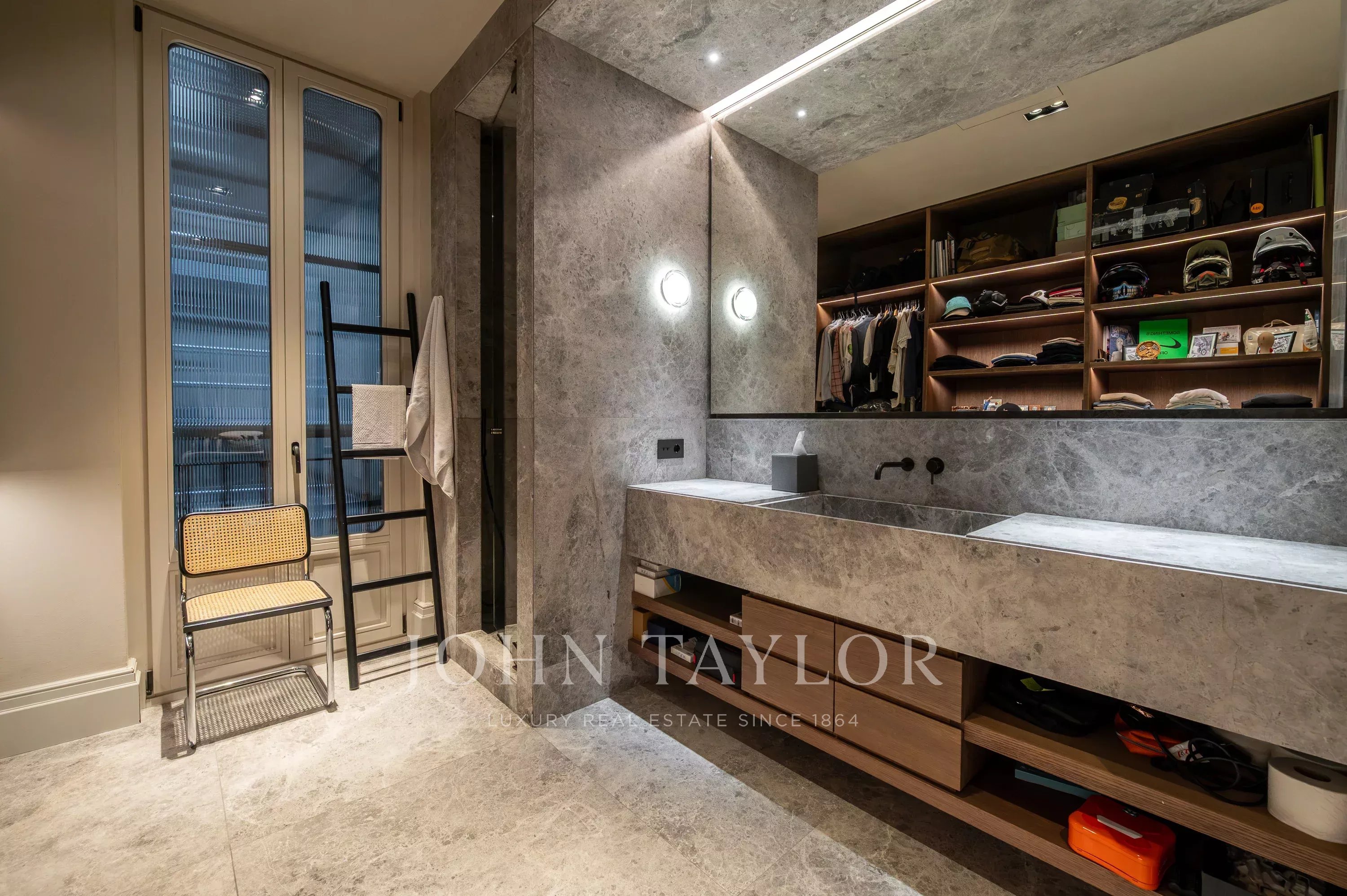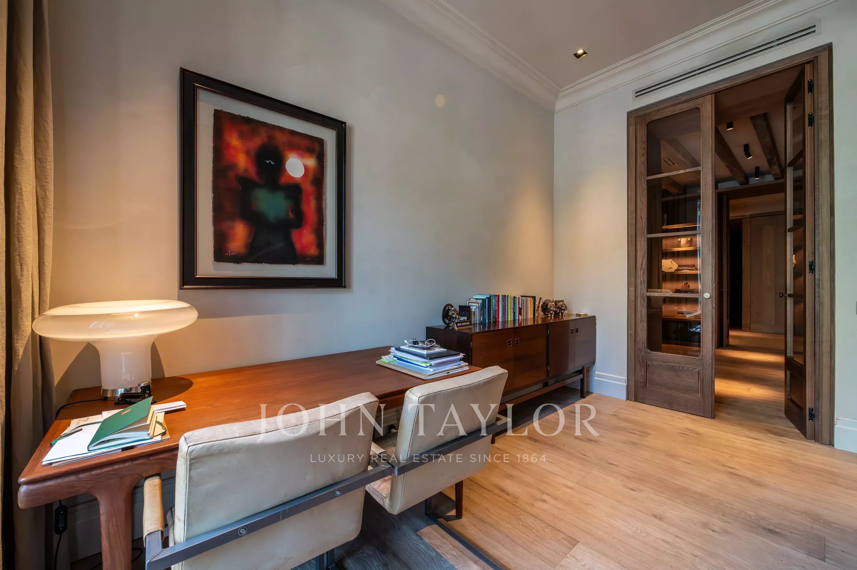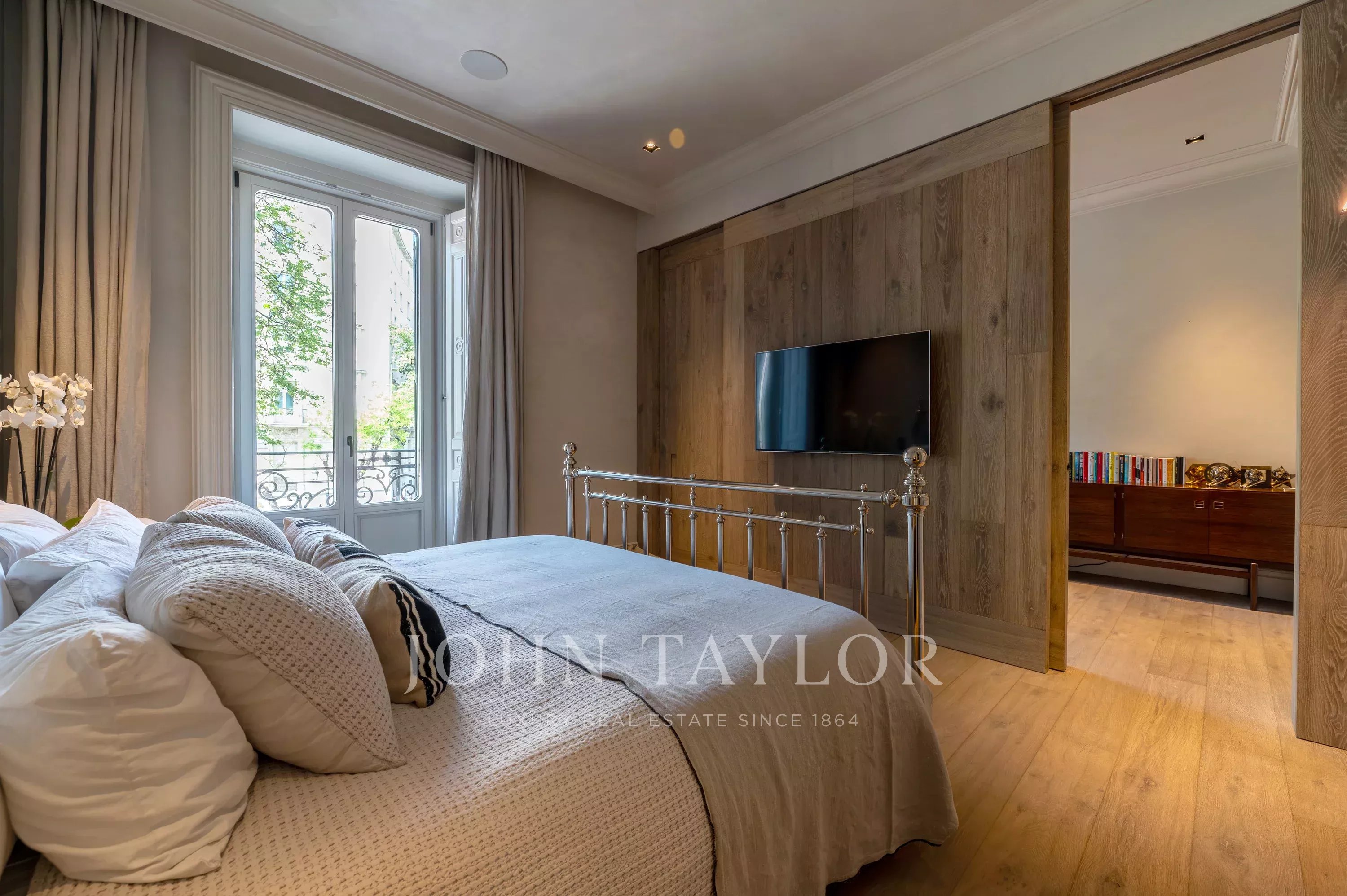 Hlavní apartmá představuje skutečný samostatný oázu, zahrnující elegantní pracovní kout, ložnici s privilegovaným výhledem na ulici Alcalá, prostorný šatník navržený pro milovníky módy a nádherné koupelny obložené mramorem.