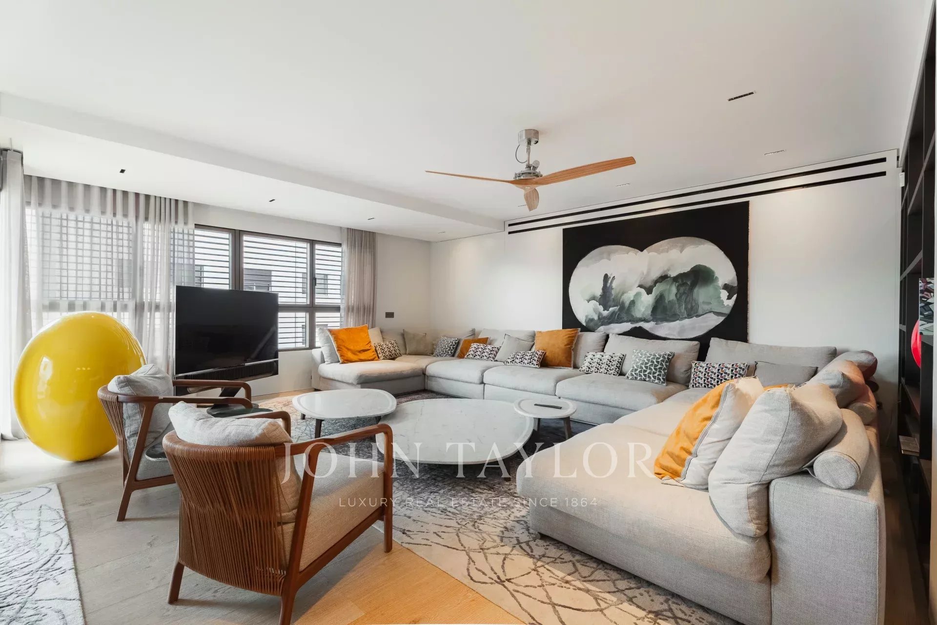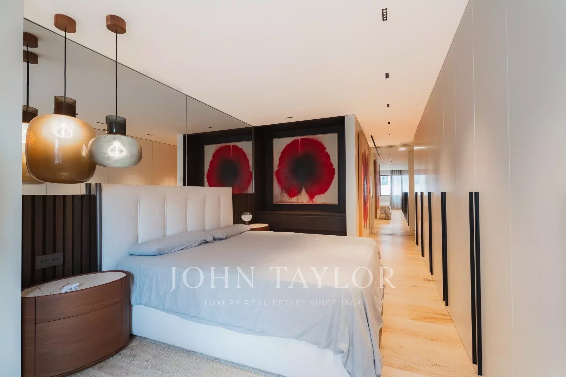 Tento moderní, plně zařízený byt nabízí prostorné otevřené uspořádání s designovou kuchyní, elegantní jídelnou a světlým obývacím pokojem, ze kterého je přímý vstup na krytou terasu s nepřerušeným výhledem na ikonickou katedrálu v Palmě.