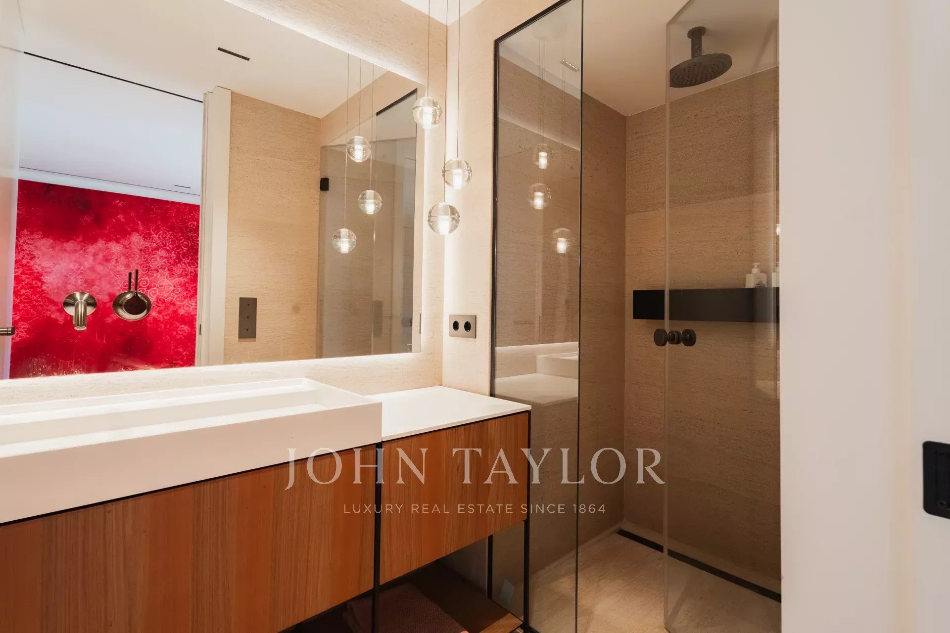 Nemovitost zahrnuje tři prostorné dvoulůžkové ložnice, z nichž každá má vlastní koupelnu a vestavěné úložné prostory – ideální řešení pro dlouhodobé bydlení nebo profesionály hledající komfort a prostor.