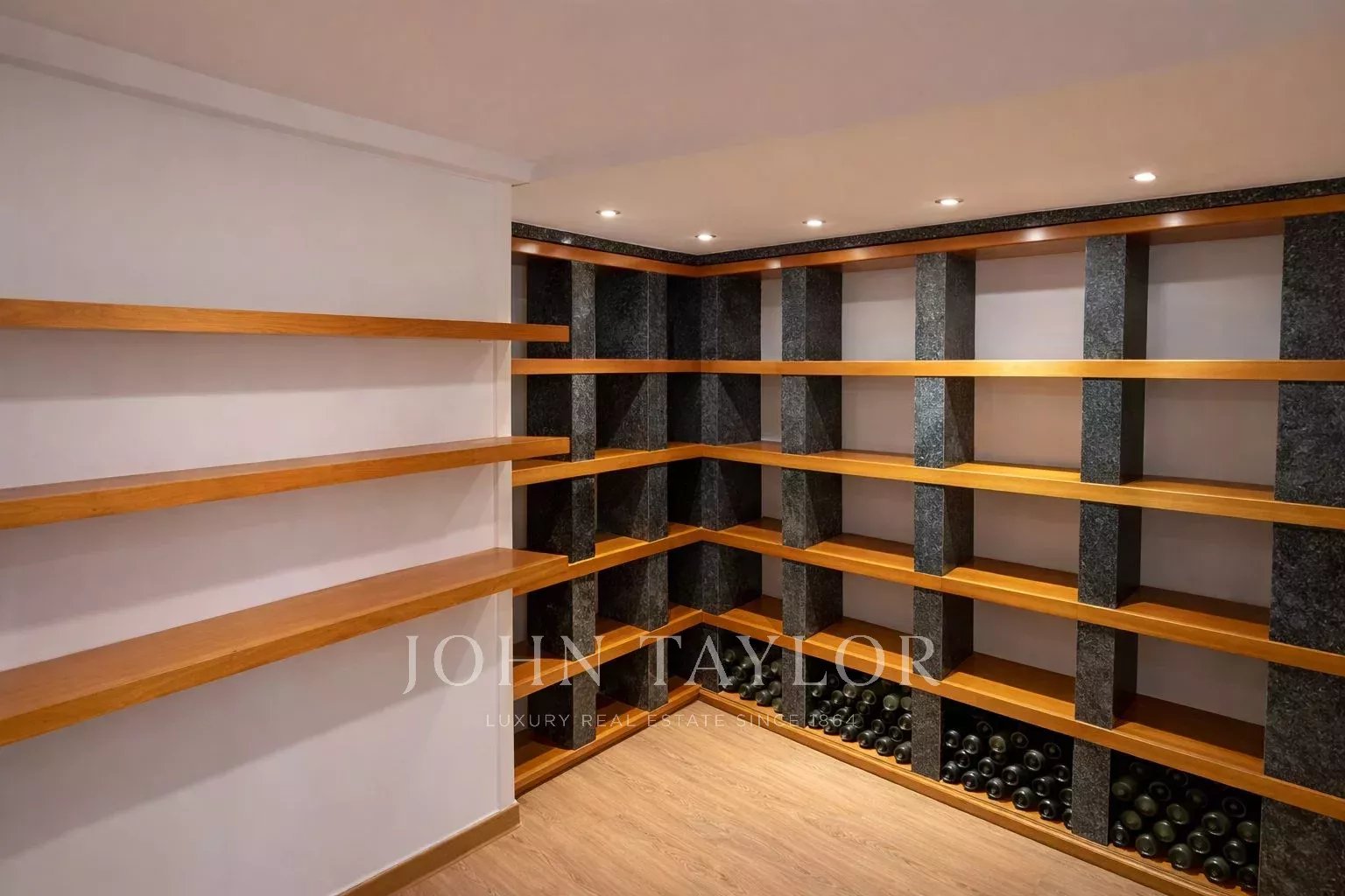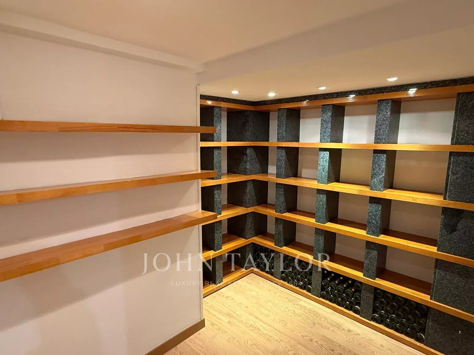 Nemovitost doplňuje všestranné spodní patro, které výrazně rozšiřuje možnosti využití: velká víceúčelová místnost ideální jako domácí kino, herna nebo kancelář, dále vinný sklípek, spíž a služební ložnice s kompletní koupelnou. Uzavřená garáž pro dvě vozidla s přímým vstupem do domu dodává celku komfort a funkčnost.