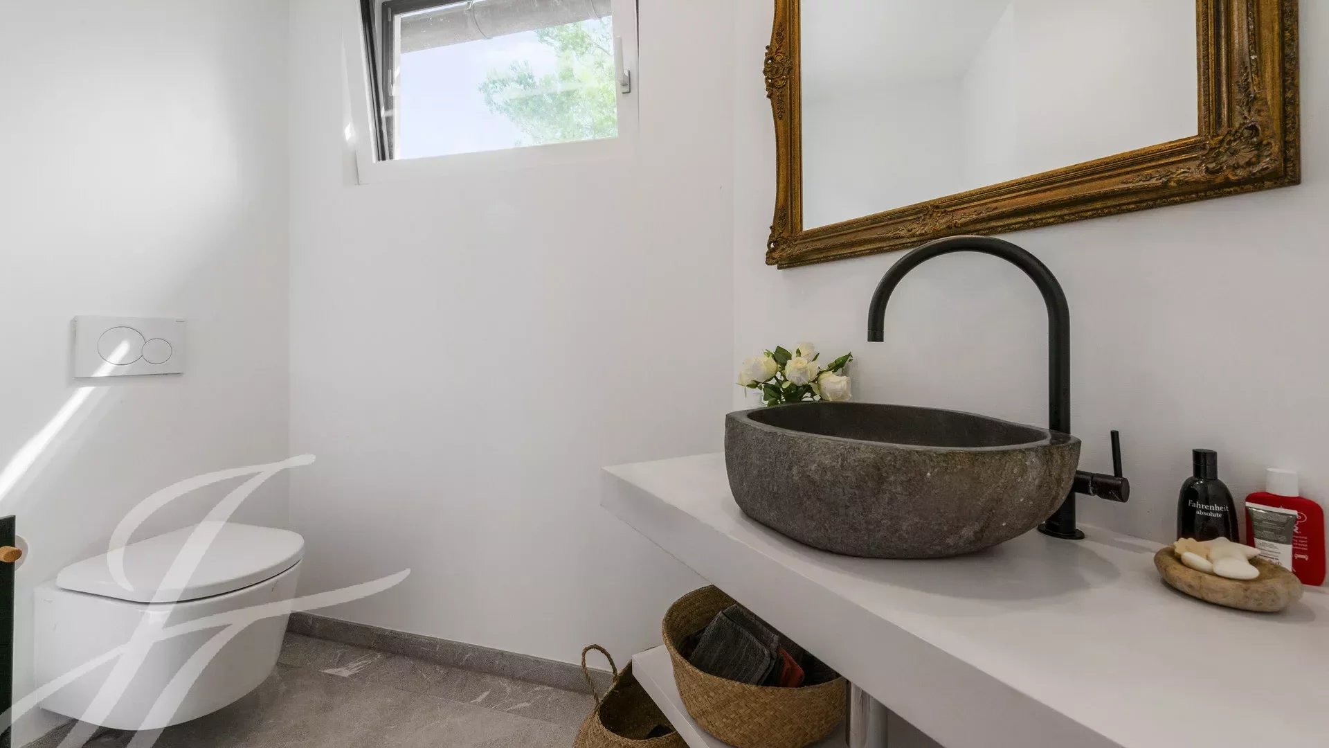 Objevte klidný život v této klidné a velmi žádané rezidenční oblasti. Tento úžasný moderní dům ve středomořském stylu nabízí jedinečný ostrovní zážitek, s pozemkem o rozloze 1492 m2 a zastavěnou plochou 340 m2, který vystihuje podstatu luxusu a pohodlí. Díky jihozápadní orientaci, která zaručuje slunečné dny a teplé západy slunce, je tato nemovitost vybavena podlahovým vytápěním, které zajistí útulný pocit v každém koutě. Dispozice domu se 3 ložnicemi a 3 koupelnami a toaletou pro hosty byla navržena s ohledem na harmonii a rodinnou pohodu. Srdcem domu je otevřený prostor, který spojuje obývací pokoj, jídelnu a kuchyň a vytváří útulnou atmosféru ideální pro sdílení výjimečných okamžiků. Přítomnost krbu dodává teplo chladnějším večerům, zatímco kryté terasy vybízejí k odpočinku s výhledem na krásnou zahradu, která nabízí dostatek prostoru a zeleninovou zahrádku pro pěstování vlastních čerstvých produktů. Automatický zavlažovací systém zajišťuje bezproblémovou péči, zatímco venkovní osvětlení vytváří večer kouzelnou atmosféru. Vychutnejte si pohodlí ve všech ročních obdobích díky klimatizaci a dvojitému zasklení pro udržení ideální teploty a osmózovému vodnímu systému. Poslední dotek luxusu dodává velký bazén, dokonalé útočiště za slunečných dnů, kde můžete relaxovat a ochlazovat se v naprostém soukromí, a navíc domek pro hosty s koupelnou, sprchou a infračerveným vytápěním. Nenechte si ujít příležitost pronajmout si tento dům - kontaktujte nás nyní a začněte žít středomořský život v té nejlepší kvalitě!