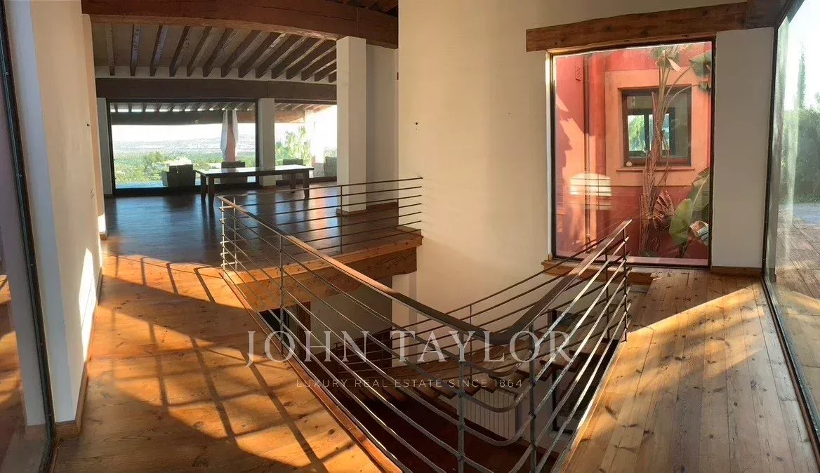 Tato impozantní nemovitost k pronájmu se nachází v exkluzivní urbanizaci Ses Rotgetes de Esporles na Mallorce, na velkém pozemku o rozloze 5 000 metrů čtverečních, který nabízí naprosté soukromí a nerušený výhled z vyvýšené polohy. Nemovitost je rozložena do dvou podlaží a 250 metrů dlouhého suterénu s velkým potenciálem využití. V hlavním patře najdeme velký obývací pokoj s jídelnou s vysokými stropy s dřevěnými trámy a velkými okny, samostatnou kuchyň, pracovnu, pokoj pro hosty a toaletu pro hosty. Spodní patro OBSAHUJE prostorné ložnice, každou s vlastní koupelnou a šatnou. Venku se nachází velká terasa, zahrada, 15metrový bazén a velká garáž. Nemovitost se pronajímá nezařízená a v celém objektu je klimatizace. Jedná se o jedinečnou příležitost užít si luxusní životní styl v jedné z nejžádanějších oblastí Mallorky. Pro více informací nebo sjednání prohlídky nás prosím kontaktujte.
