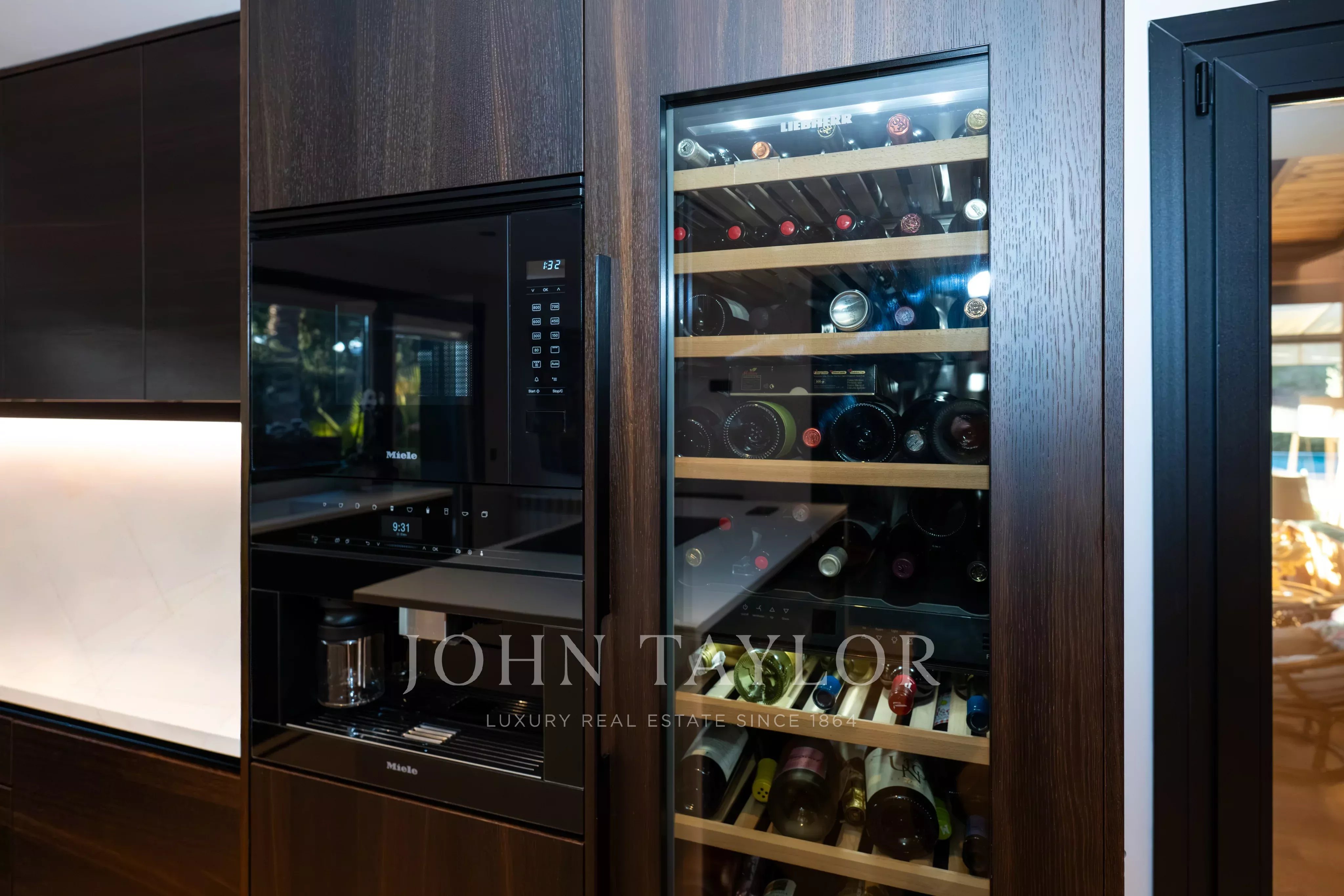 Nemovitost nabízí několik ložnic, z nichž některé mají vlastní koupelnu, dále pracovnu, zázemí pro personál a další flexibilní prostory. Maximální pohodlí po celý rok zajišťuje vytápění a klimatizace ve všech místnostech.
