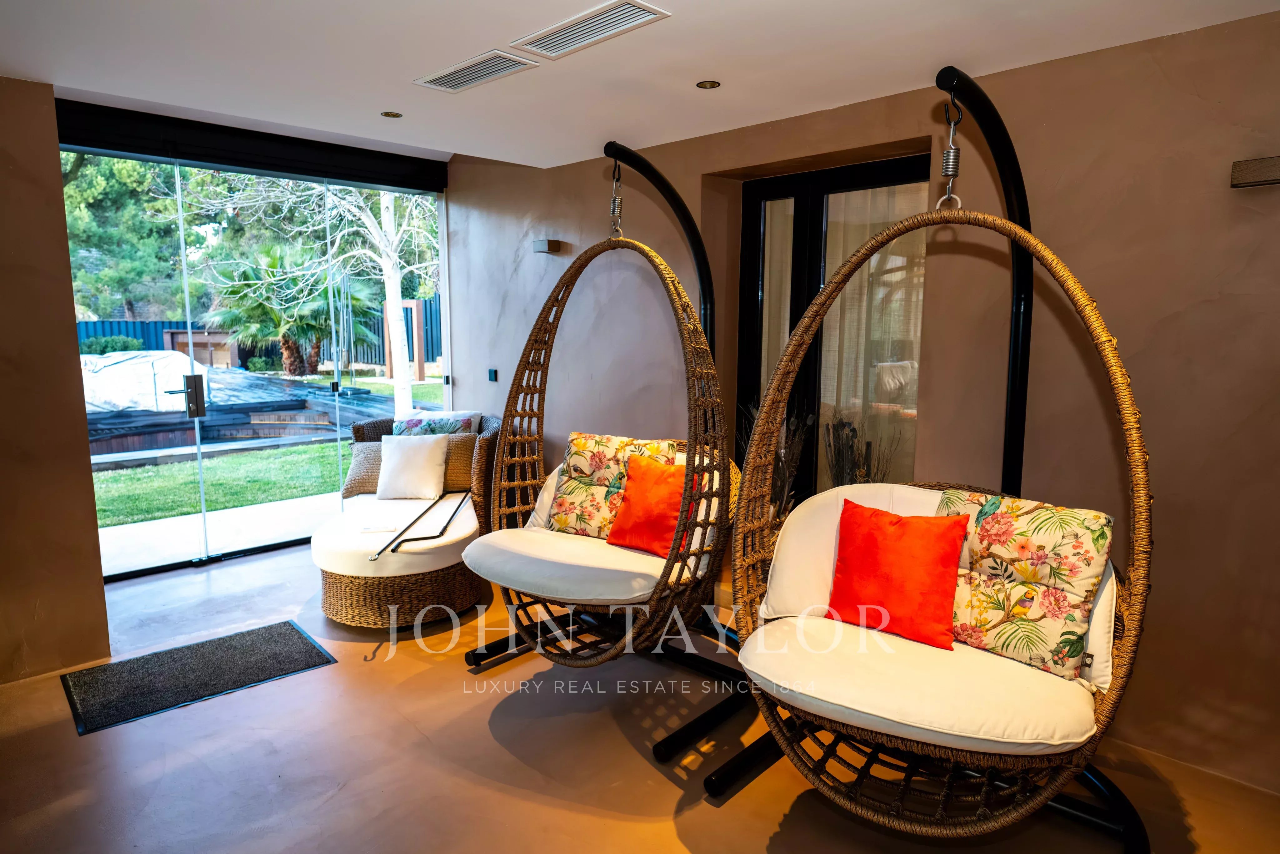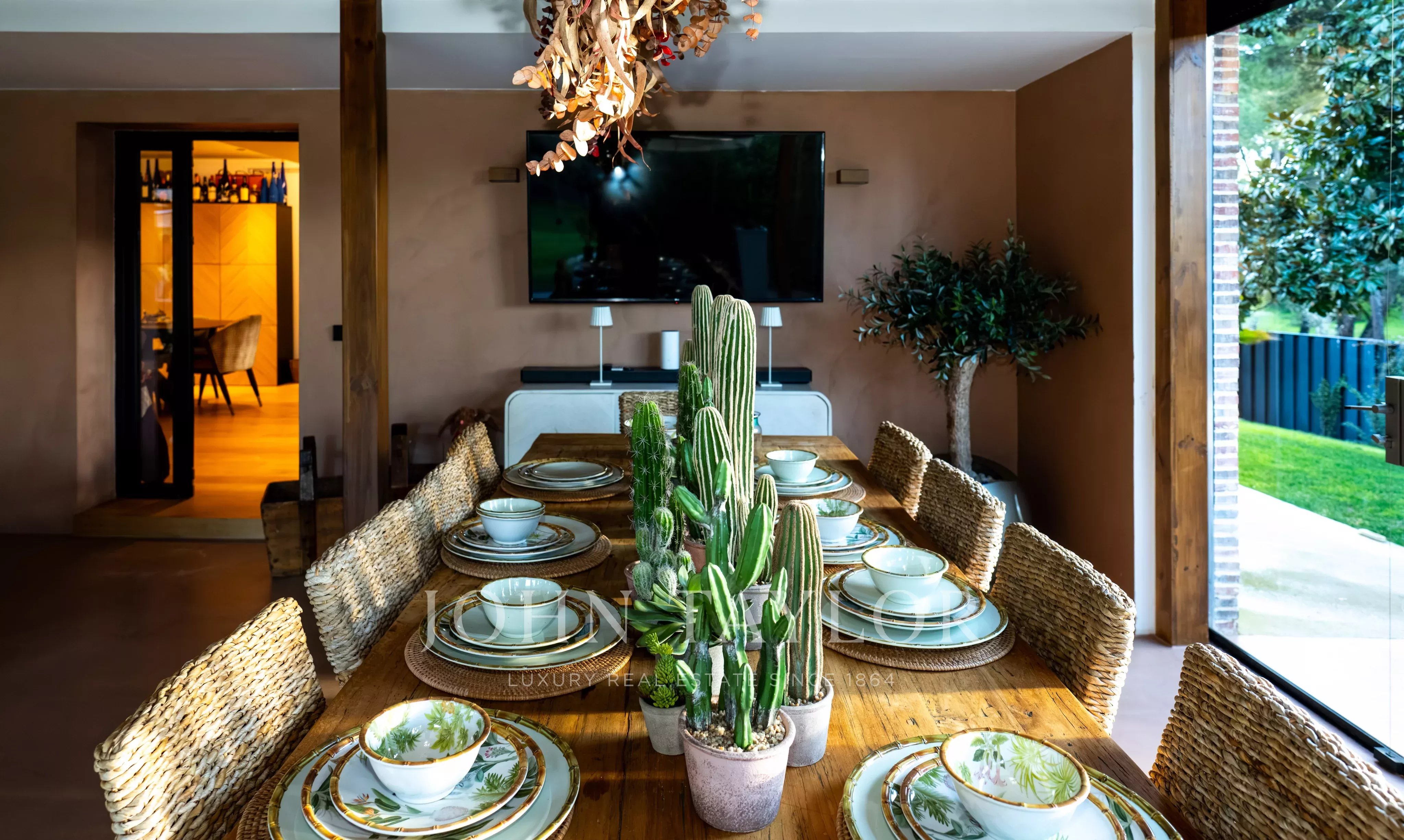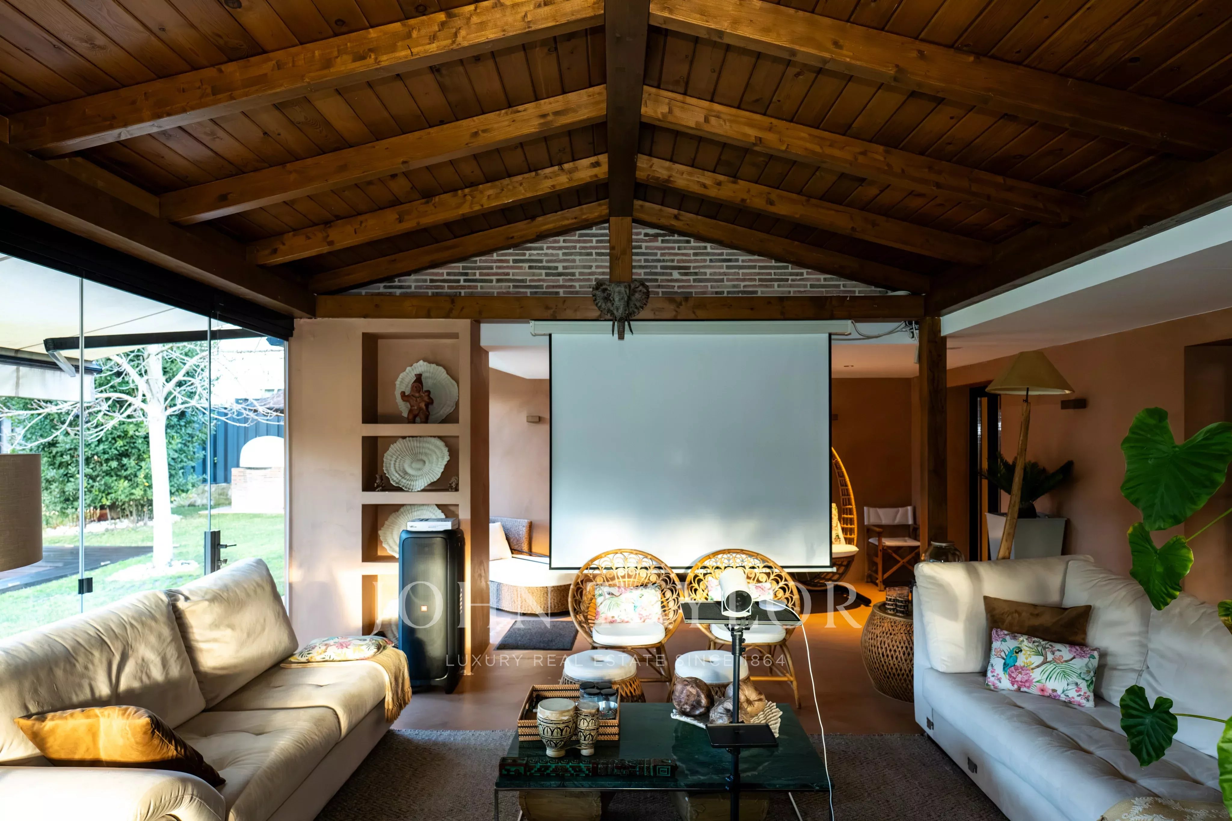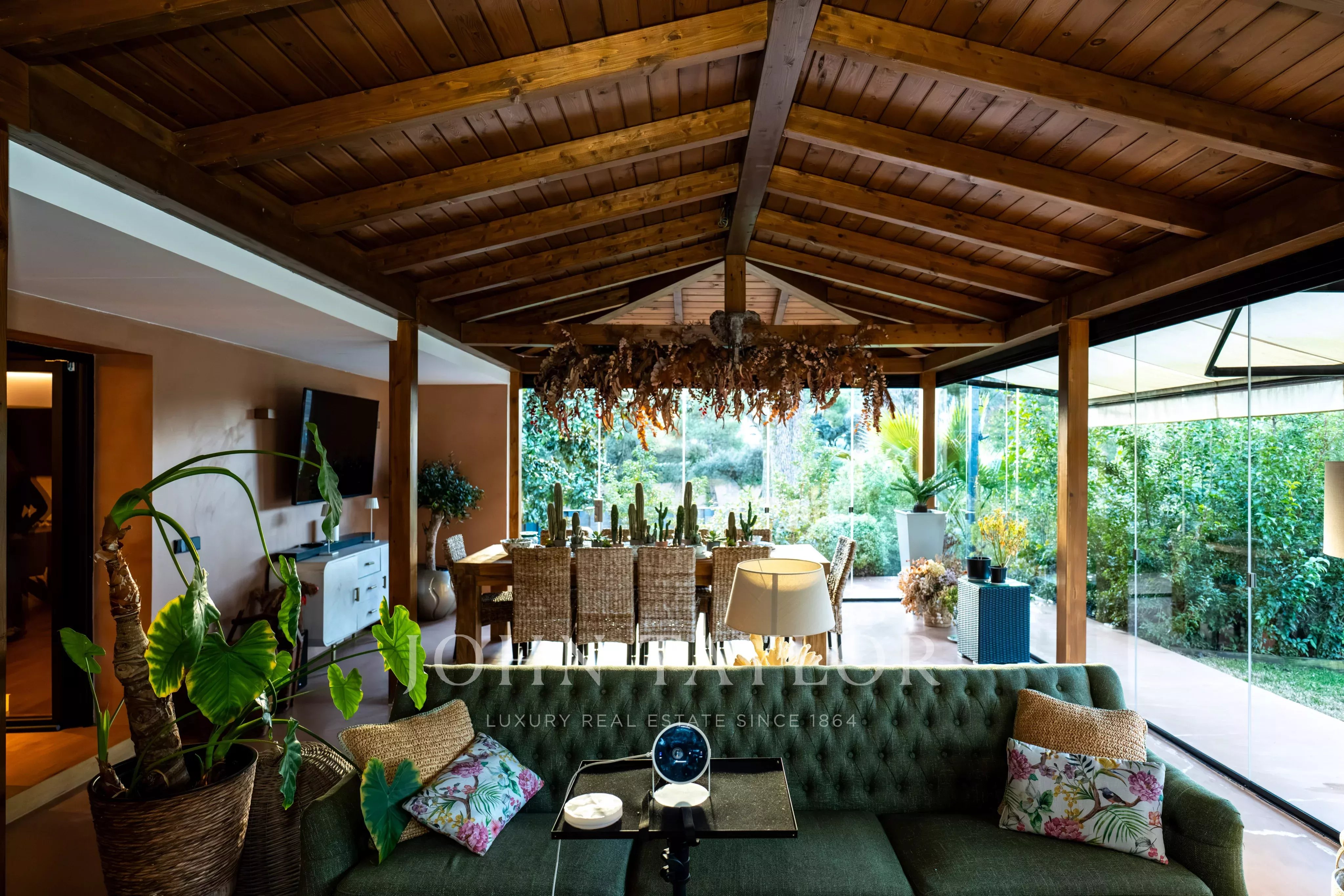 Vila je rozložena do dvou podlaží a vyniká velkou obytnou plochou, vysokými stropy, dostatkem přirozeného světla a funkční dispozicí. Hlavní obytná část zahrnuje prostorný obývací pokoj s krbem a přímým vstupem do zahrady. Plně vybavená kuchyně je velkorysá a vhodná jak pro každodenní bydlení, tak pro společenská setkání, doplněná o velký uzavřený a klimatizovaný prostor ideální pro akce po celý rok.