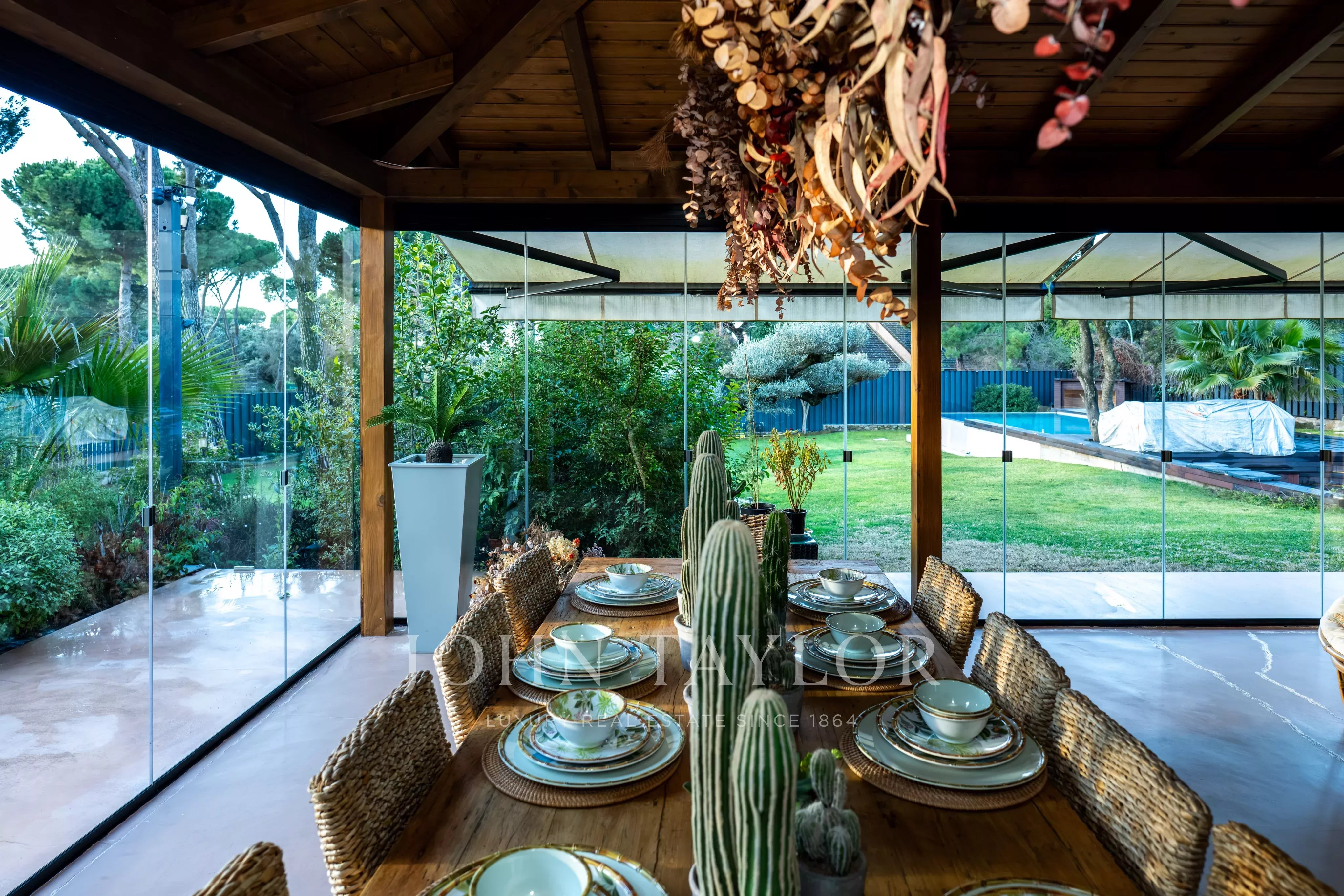 Venkovní část je skutečnou soukromou oázou s udržovanou zahradou, bazénem s jacuzzi, grilovací zónou a prostory určenými k relaxaci a odpočinku. Vila se nachází v uzavřeném rezidenčním areálu s 24hodinovou ostrahou, rozsáhlými zelenými plochami a výborným spojením do centra Madridu.