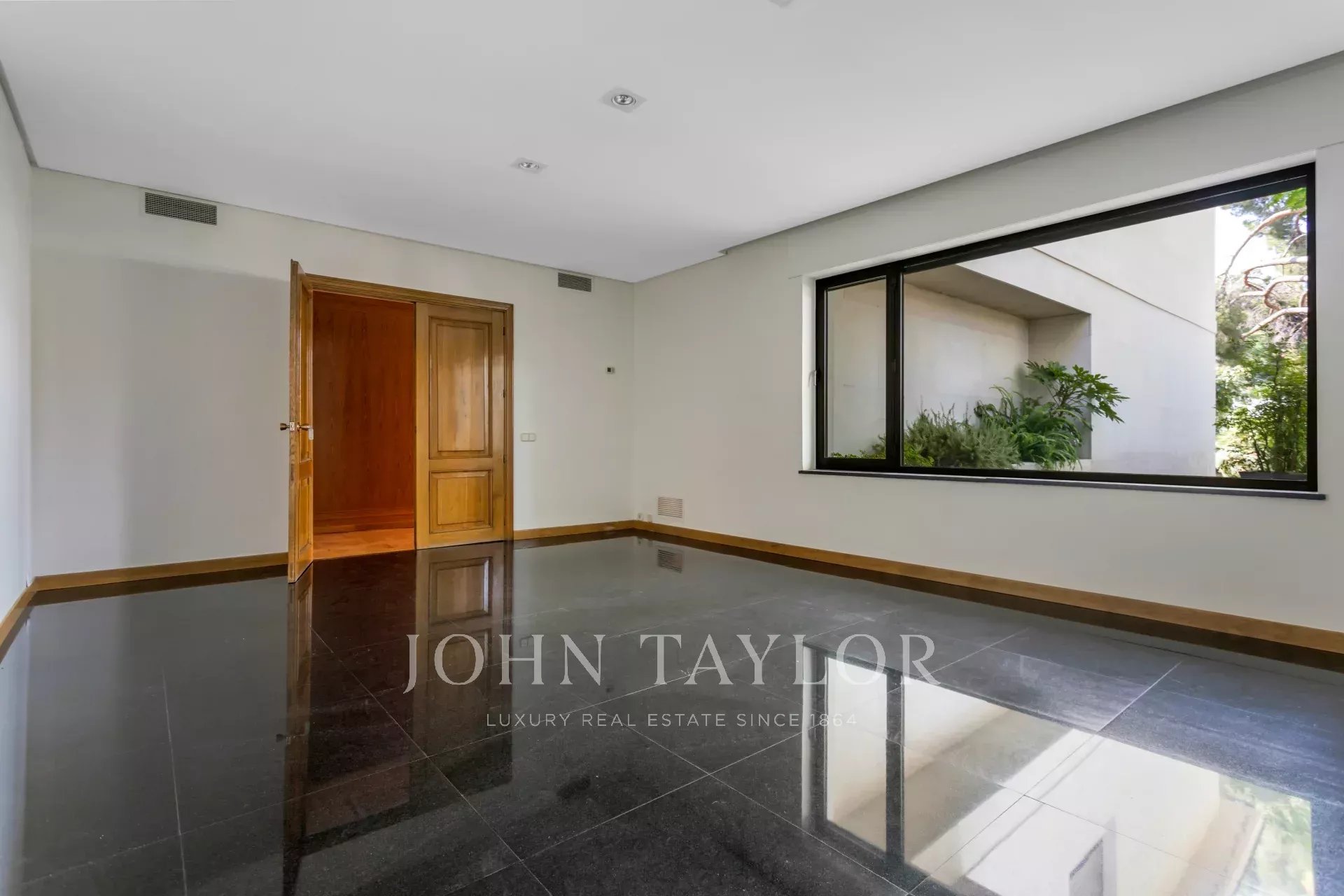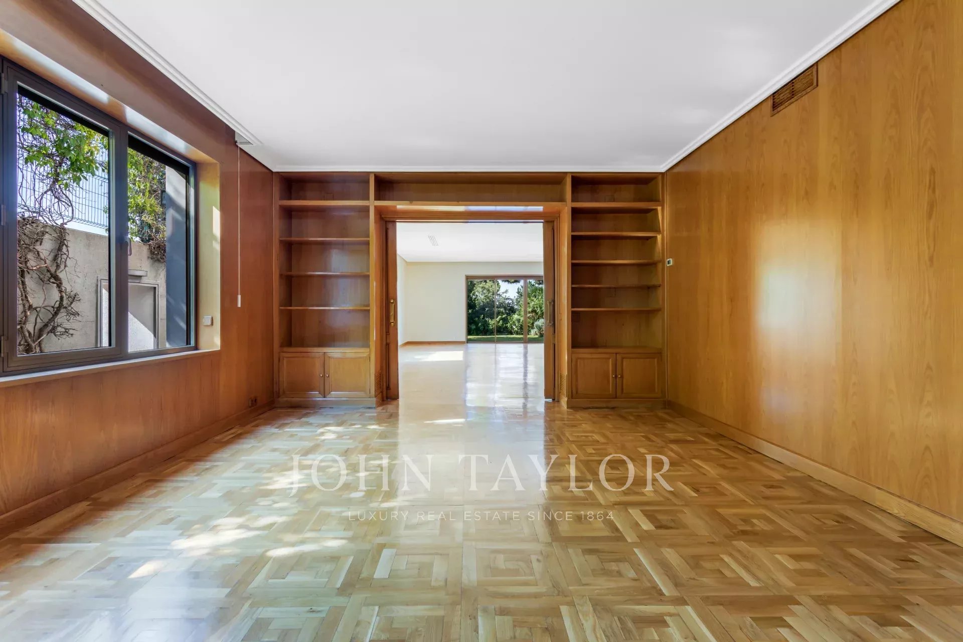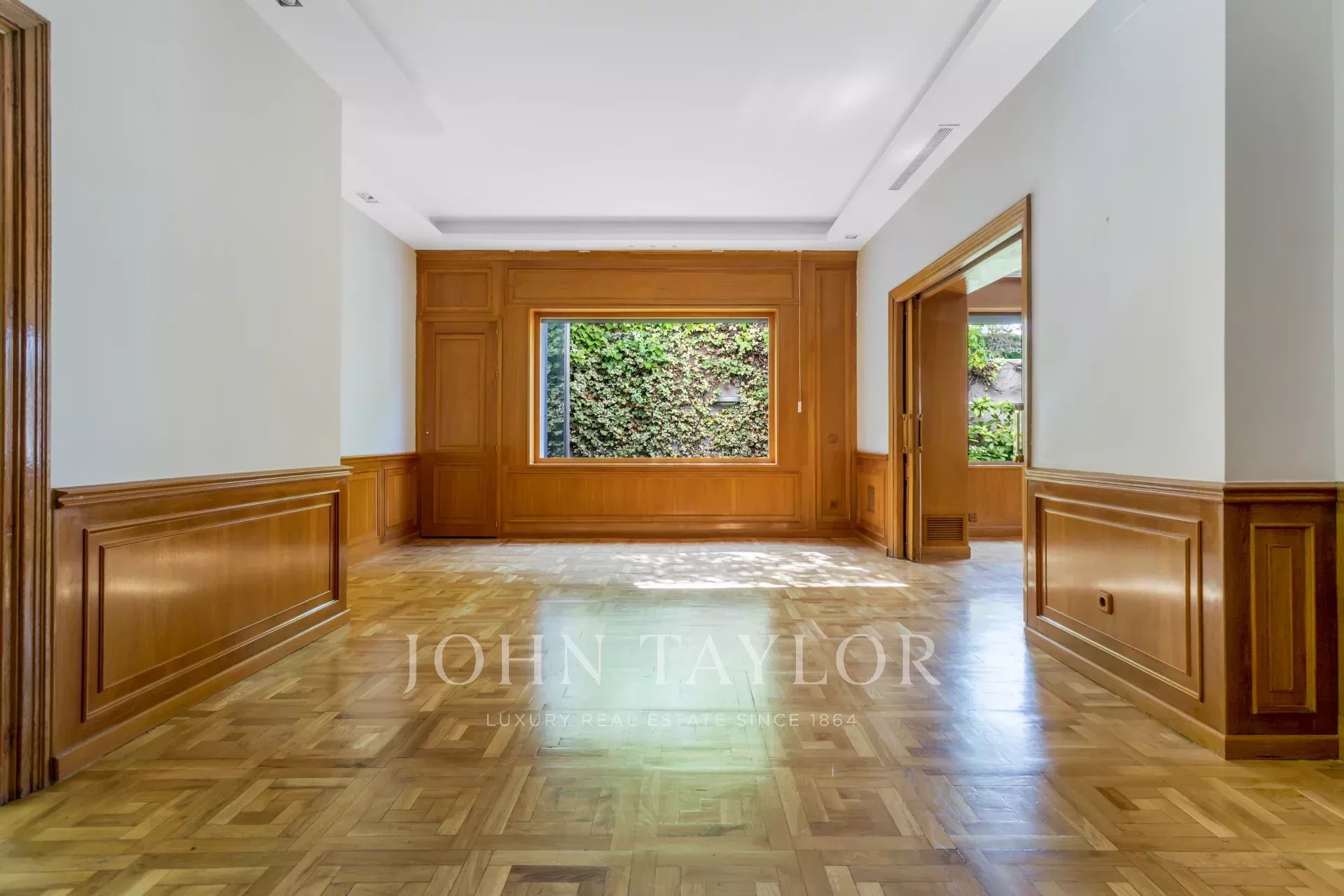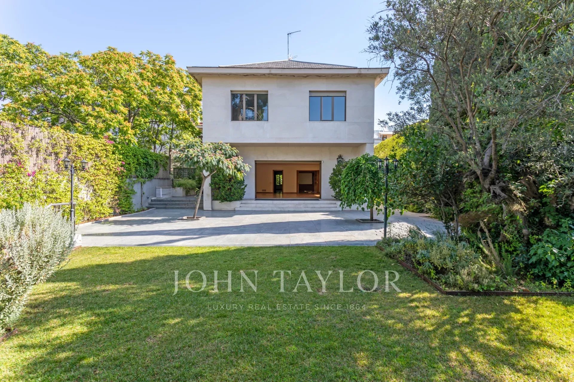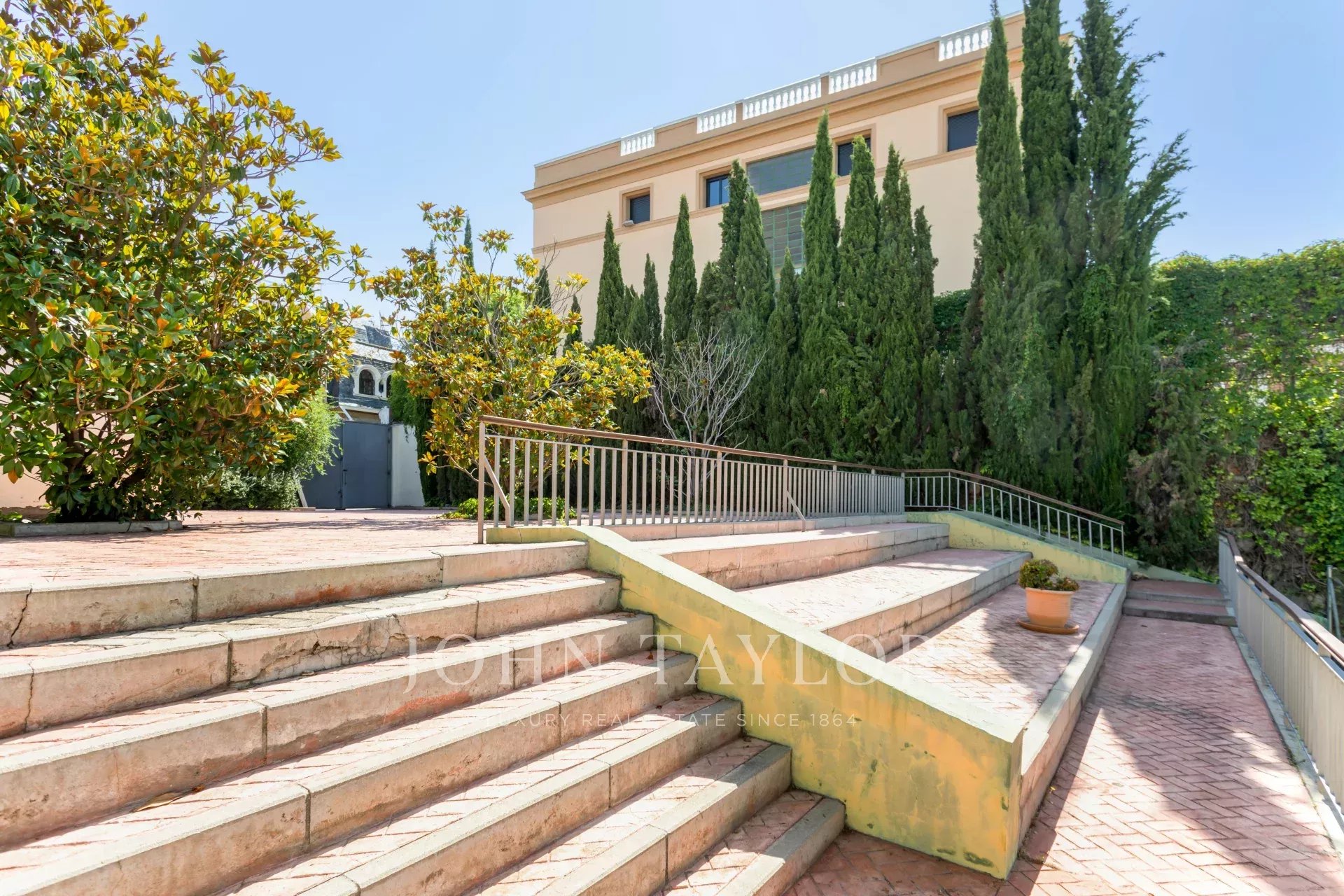 Hlavní dům má rozlohu 850 m² a je postaven na třech úrovních: hlavní patro s přímým vstupem na verandu, zahrada o dvou úrovních s konsolidovanými terénními úpravami. Toto patro věnované společenské části má velký obývací pokoj orientovaný na jih, obývací pokoj, knihovnu, jídelnu s přímým vstupem do kuchyňské části a toalety. Toaleta pro hosty.