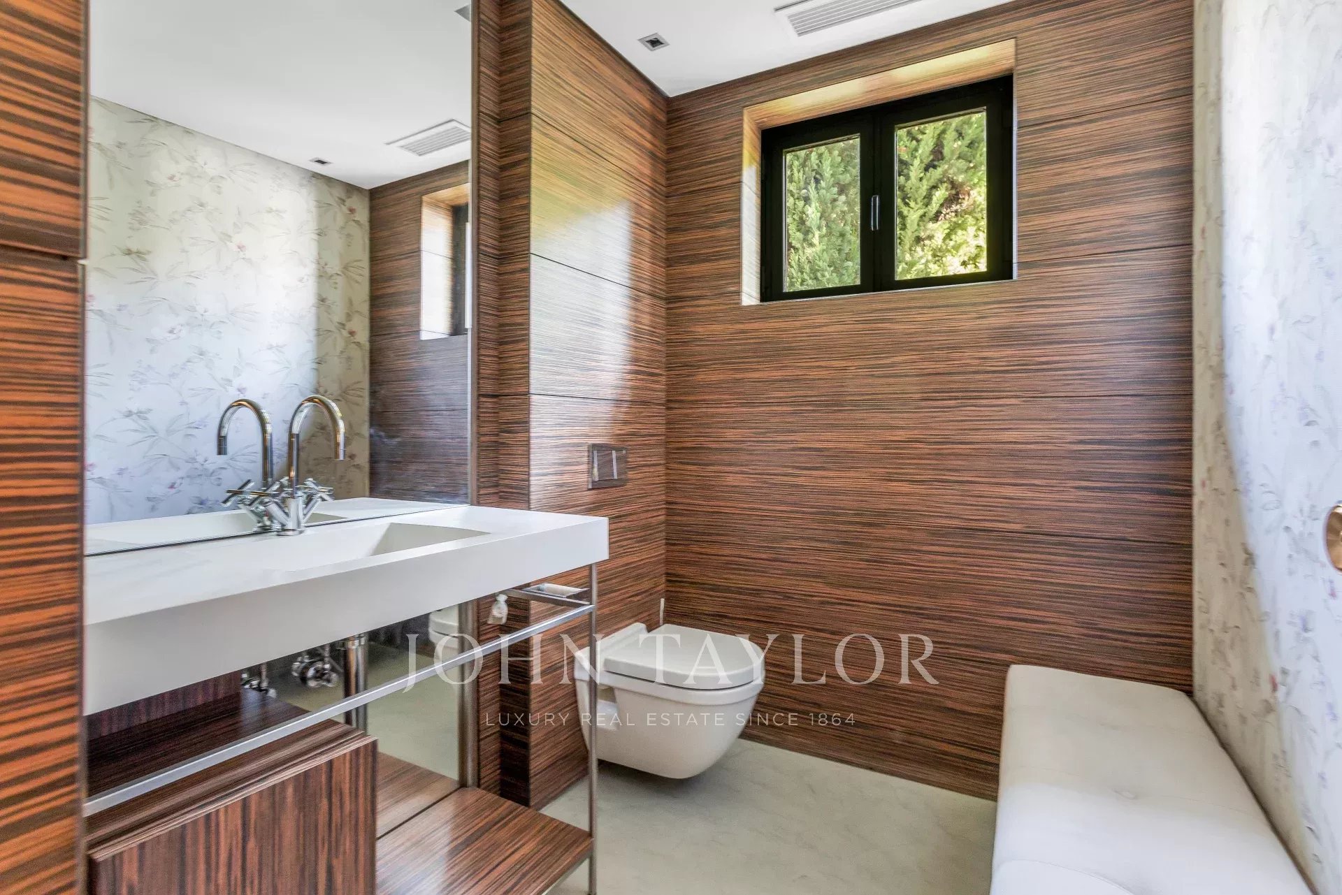 Uprostřed zalesněného pozemku o rozloze přibližně 2 800 m² se nachází tato nádherná nemovitost k pronájmu.