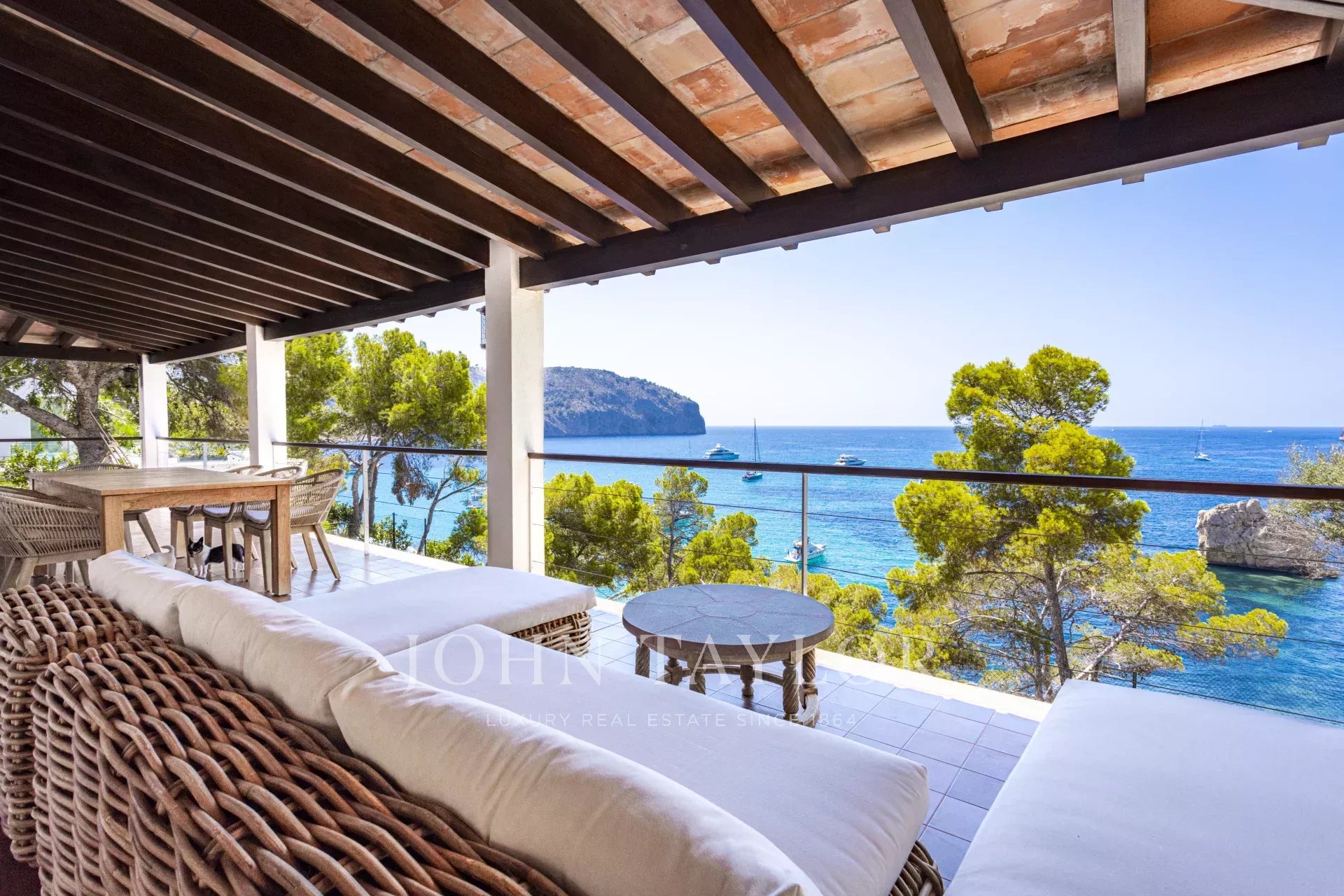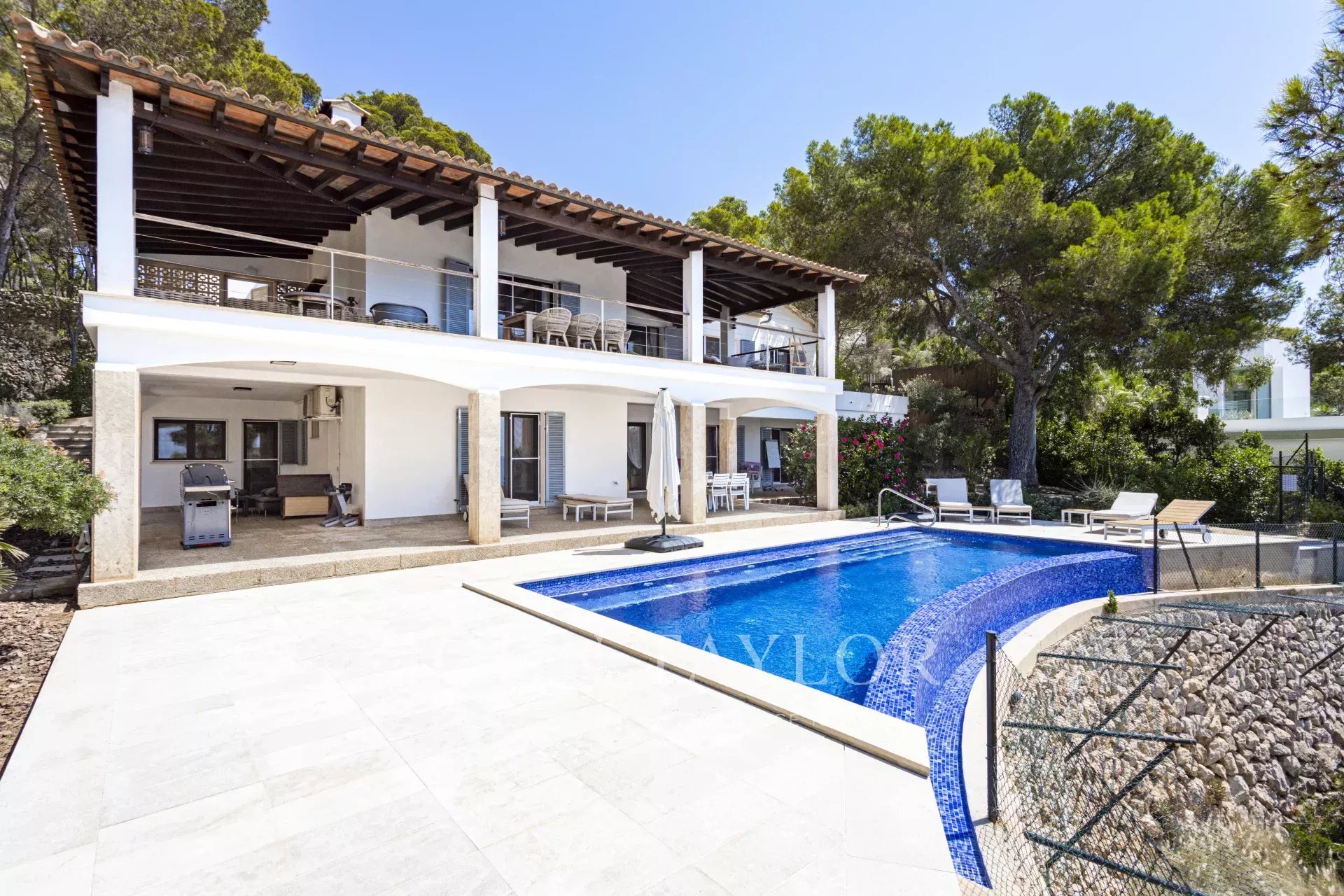 Tato exkluzivní vila na pobřeží v Camp de Mar na Mallorce nabízí bezkonkurenční panoramatický výhled na Středozemní moře a přímý přístup k moři. Tato nemovitost se nachází na privilegovaném a klidném místě na konci slepé ulice, byla postavena v roce 1981 a vyznačuje se atraktivním vnějším designem, který odráží architektonický půvab tohoto období. Vila se zastavěnou plochou 431 m² a rozkládající se na prostorném pozemku o rozloze 1864 m² má čtyři ložnice, tři koupelny a garáž pro dvě auta. Venku se nachází velkolepý bazén s výhledem na moře a prostorné terasy s verandou v přízemí i v prvním patře, které jsou ideální pro vychutnávání středomořského klimatu a výhledů na moře, které může nabídnout pouze Camp de Mar. Tato jedinečná nemovitost na Mallorce je ideální pro ty, kteří hledají exkluzivní rezidenci v jedné z nejvyhledávanějších oblastí ostrova.