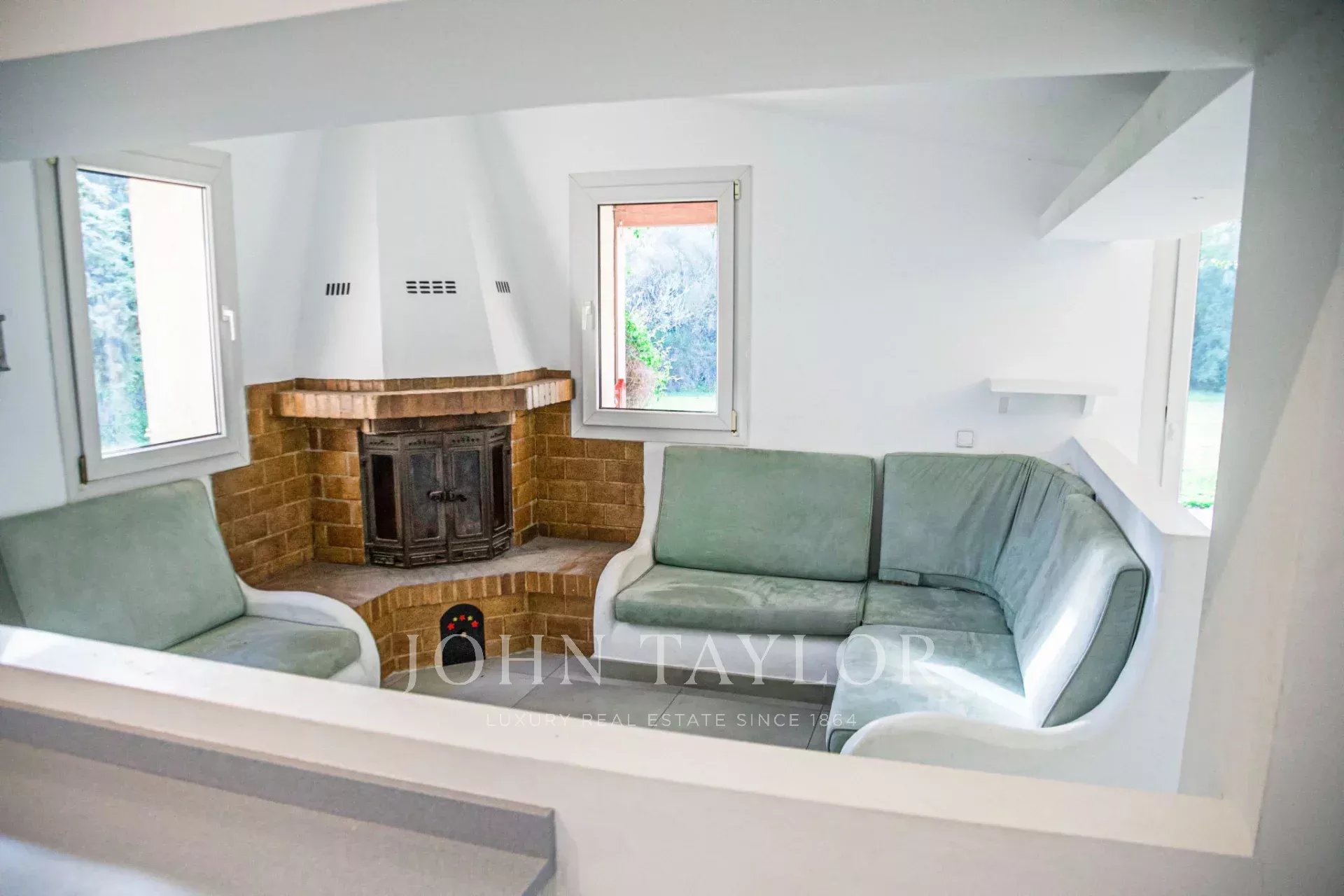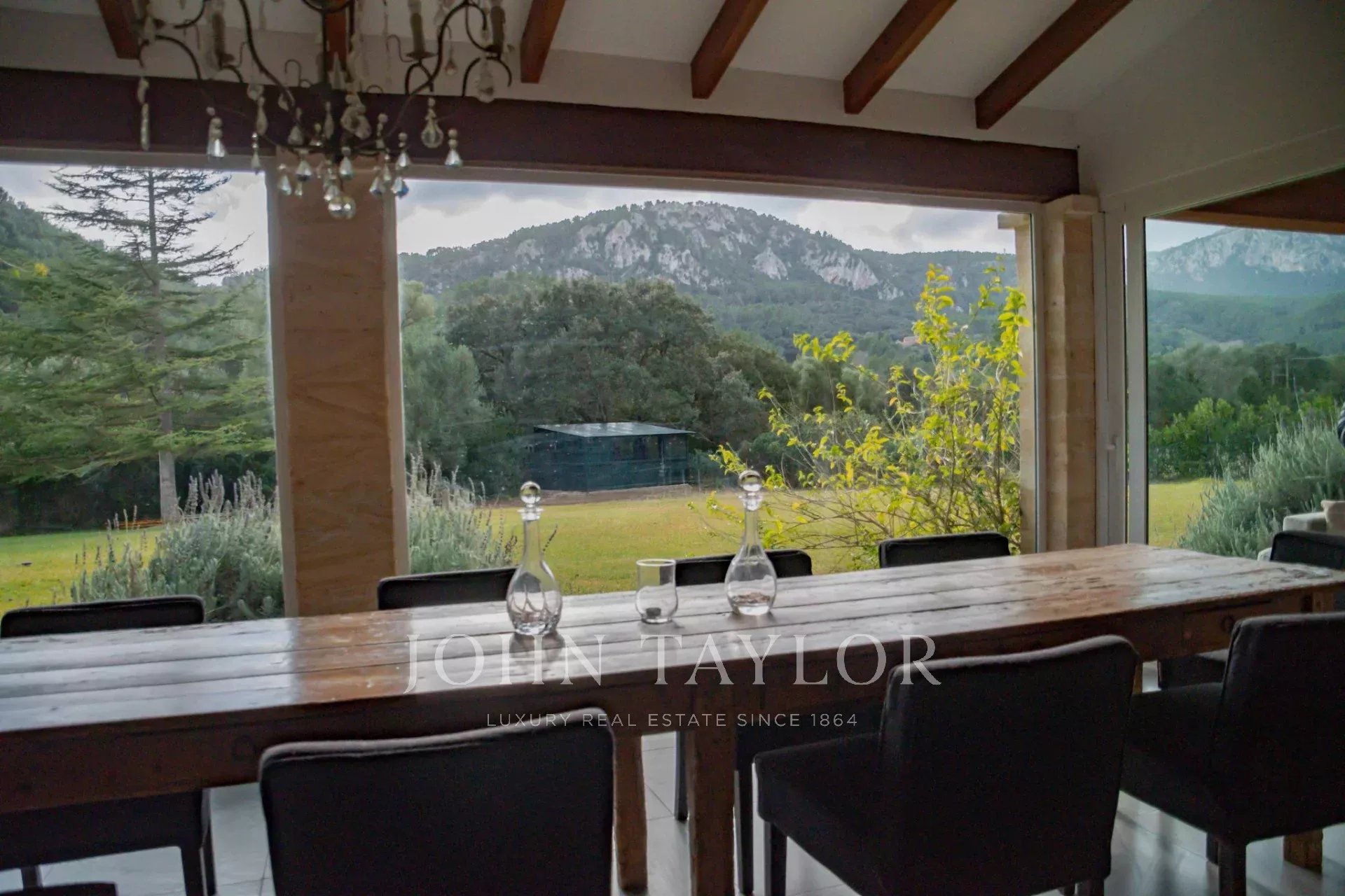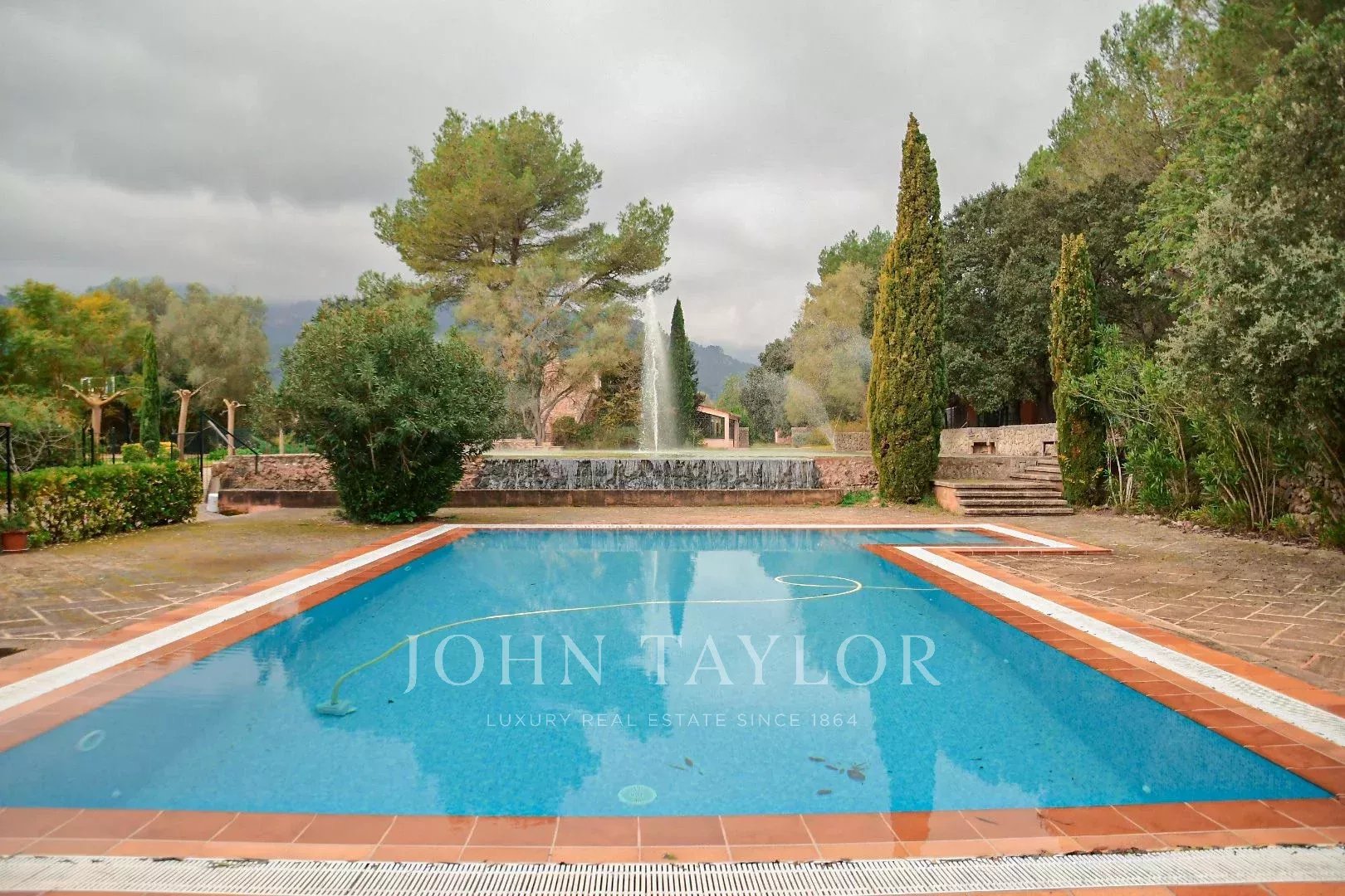 Nesmíme zapomenout ani na soukromý bazén obklopený krásnou zahradou, ideální pro relaxaci a užívání si středomořského klimatu, a jezírko s vodními fontánami, které zahradě dodává nádech elegance a klidu. Nechybí ani zázemí pro koně, ideální pro milovníky jízdy na koni.