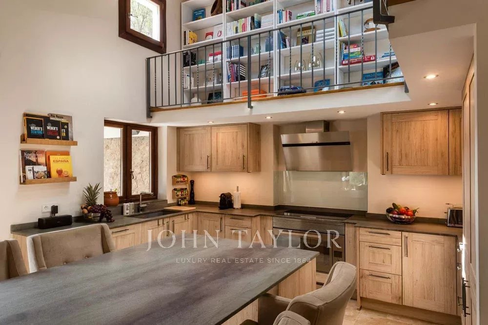 Okouzlující Finca Bella Roca se nachází v centru horské vesnice Galilea a nabízí klidnou oázu v působivém pohoří Tramuntana na Mallorce. Toto útočiště, obklopené nedotčenou přírodou a nekonečnými panoramatickými výhledy na hory a moře, slibuje jedinečný zážitek v srdci Serra de Tramuntana zapsaného na seznamu světového dědictví UNESCO. Po příjezdu na vás na terase čeká osvěžující sklenka růžového vína, zatímco v zahradě zpívají ptáci a v pozadí hladí mandloně jemný vánek. Finca Bella Roca nabízí veškeré vybavení, které potřebujete pro bezstarostnou dovolenou. Můžete se zde uchýlit do ústraní a odpočívat s rodinou a přáteli, daleko od turistického ruchu, ale přesto v dosahu známých mallorských památek. Ubytování nabízí prostor až pro 8 osob a také pro kojence a batolata a rozkládá se na 328 metrech čtverečních obytné plochy na třech úrovních, obklopené prostorným pozemkem o rozloze více než 3000 metrů čtverečních. K dispozici je samozřejmě bezplatná síť WLAN. K nejzajímavějším bodům finky patří úchvatný 360° výhled na hory a moře, vyhřívaný bazén se slanou vodou o rozloze 19 metrů čtverečních, prostorná sauna s výhledem do zahrady, soukromá posilovna a četná místa k odpočinku. Pro mladší hosty je k dispozici fotbalové hřiště s umělou trávou a dětské hřiště. Čtyři vkusně zařízené ložnice se rozkládají na dvou podlažích a každá má vlastní plně vybavenou koupelnu. Všechny pokoje jsou vybaveny pohodlnými pětihvězdičkovými postelemi typu box-spring, klimatizací, radiátory a bezplatným Wi-Fi připojením k internetu. Každý pokoj má svůj vlastní individuální design a barevné ladění, přičemž z každého pokoje je jedinečný výhled na moře. V horním patře hotelu Finca Bella Roca se můžete uchýlit do luxusního prostředí a naplno si užívat bezkonkurenční krásy Mallorky.