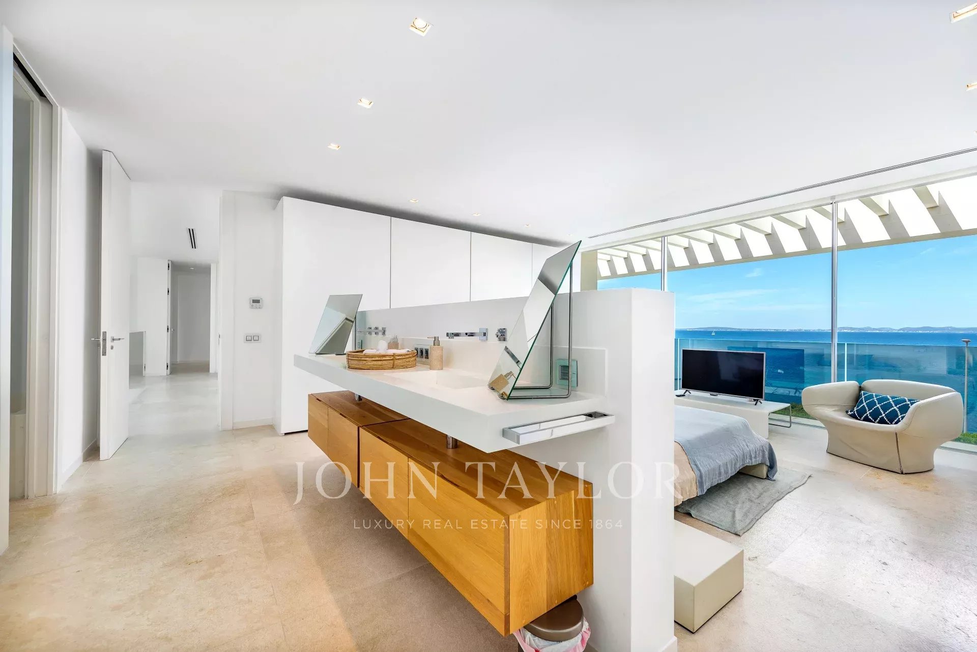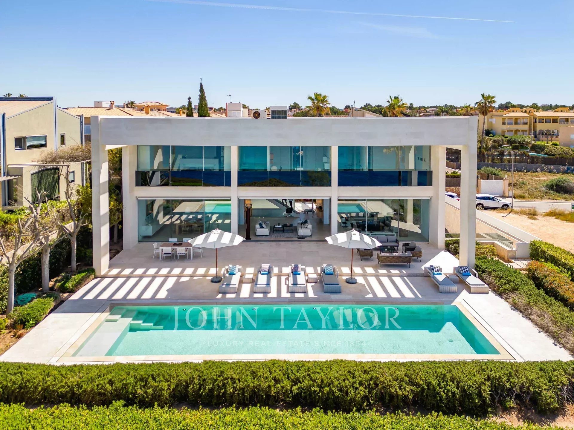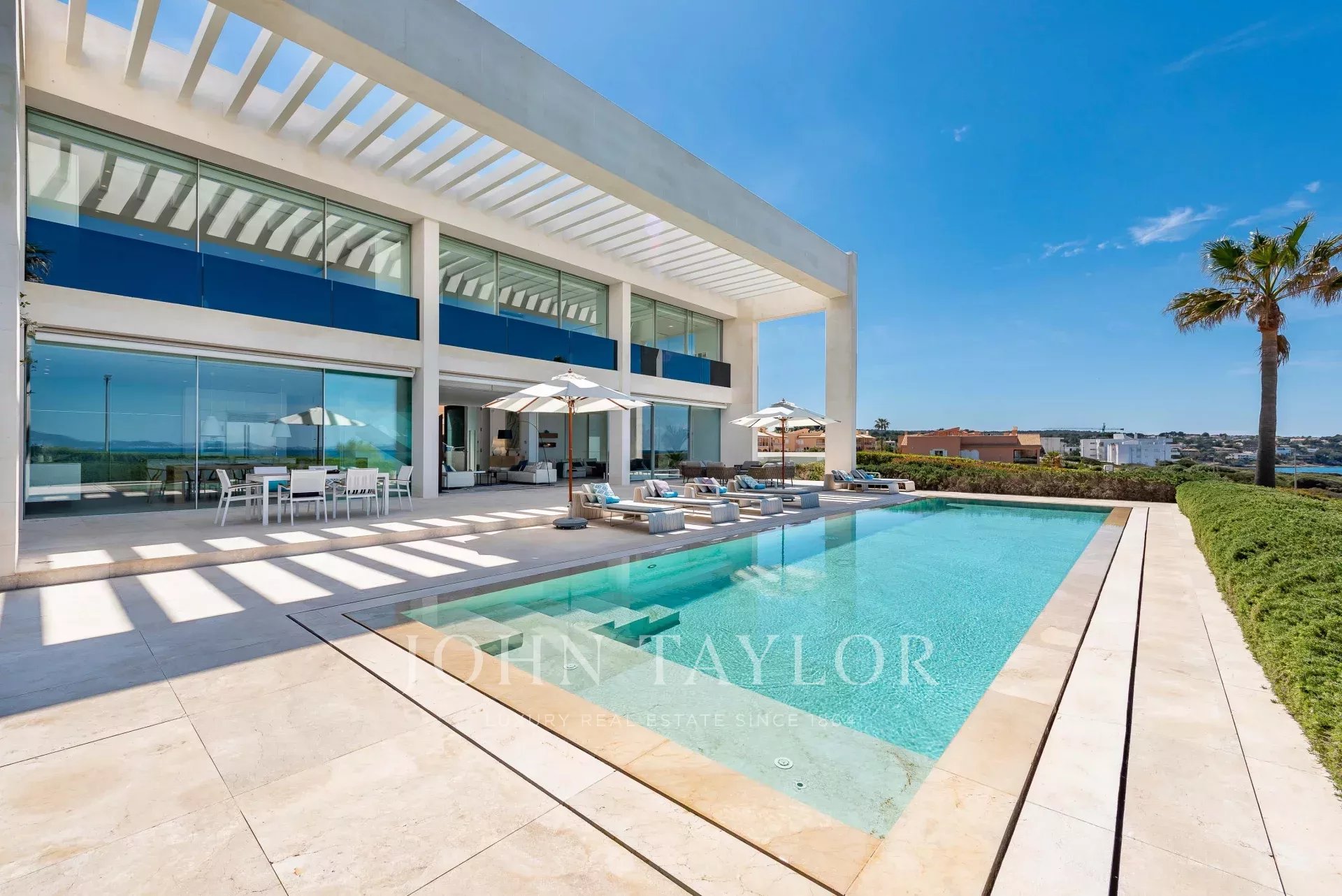 Tato fantastická vila na nábřeží v Son Veri se nachází na jihu ostrova Mallorca. Velikost, pohodlí a moderní design jsou zvláštními rysy této úchvatné vily, která se vyznačuje velkými okny a prostorem, který integruje krajinu a světlo do luxusní vily. Velmi kvalitní vila má 4 velké ložnice s možností páté ložnice. Každá ložnice má neuvěřitelný výhled na moře a vlastní koupelnu. Obývací pokoj a jídelna jsou dokonale propojeny s otevřenou plně vybavenou kuchyní. Venku se nachází báječný bazén s chill-out zónou, kde si můžete užívat luxusní životní styl a nádherné západy slunce. Nemovitost doplňuje krásná středomořská zahrada a garáž pro šest vozidel.