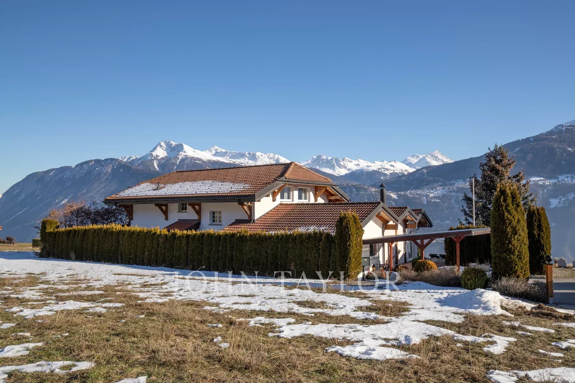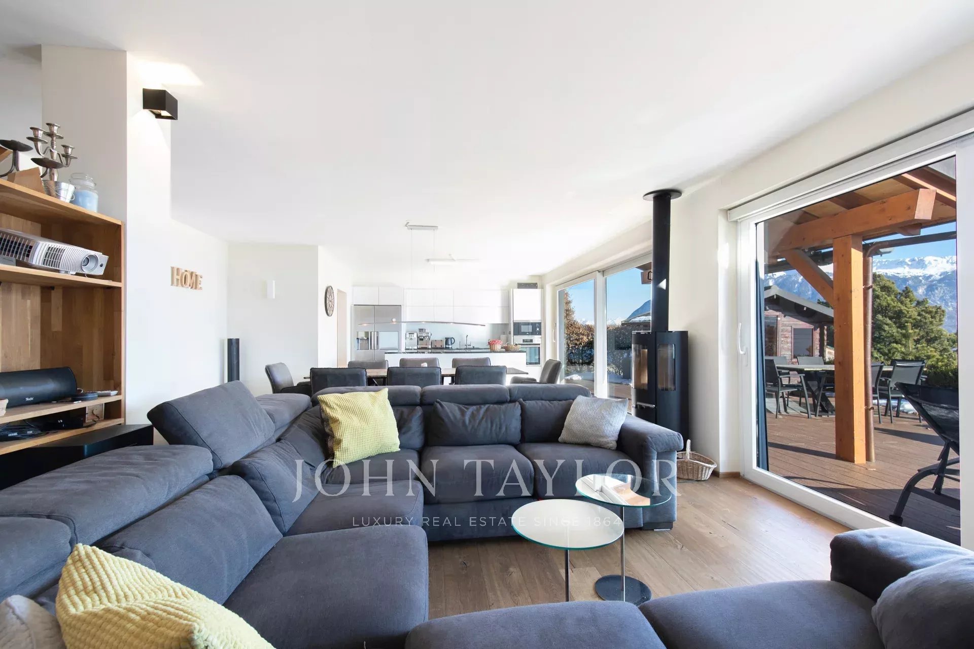 Tato nádherná vila se nachází pouhých 6 minut od centra Crans-Montany na výjimečném místě na okraji zemědělské půdy s nerušeným výhledem na Alpy a bez hluku.